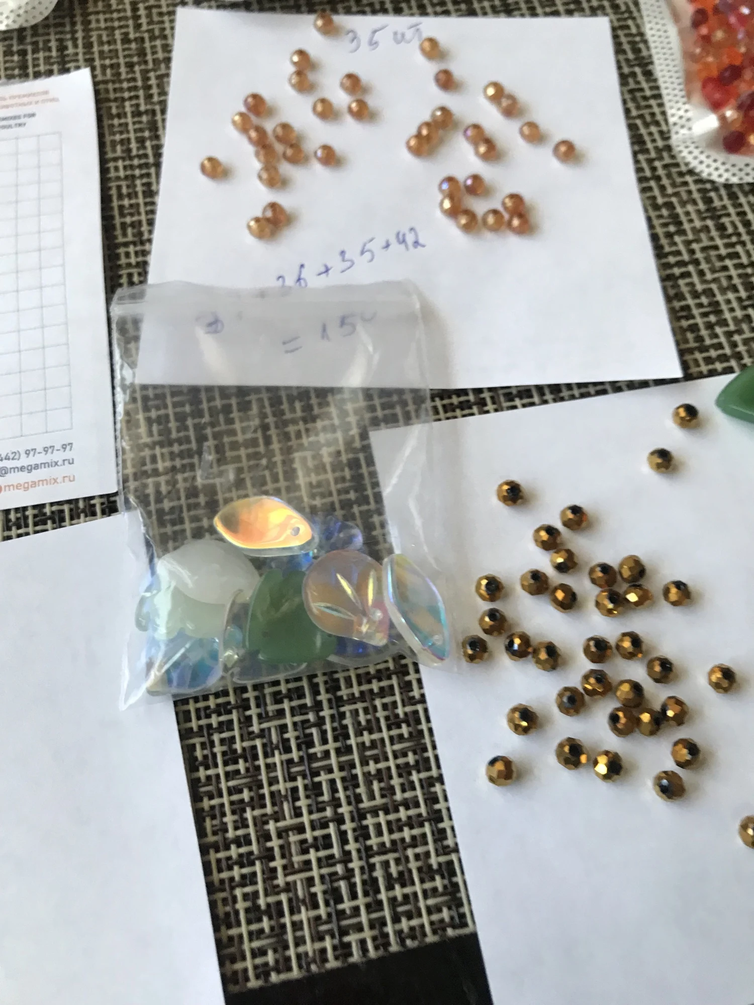 Заказывала в двух разных магазинах, пришли одновременно, плюс одинаковые подарочки слекляные листики бусины, количество бусин совпадает с заявленными у продавца - стекло. Все целые , упакованы одинаковоRU s. 19 июня 2024