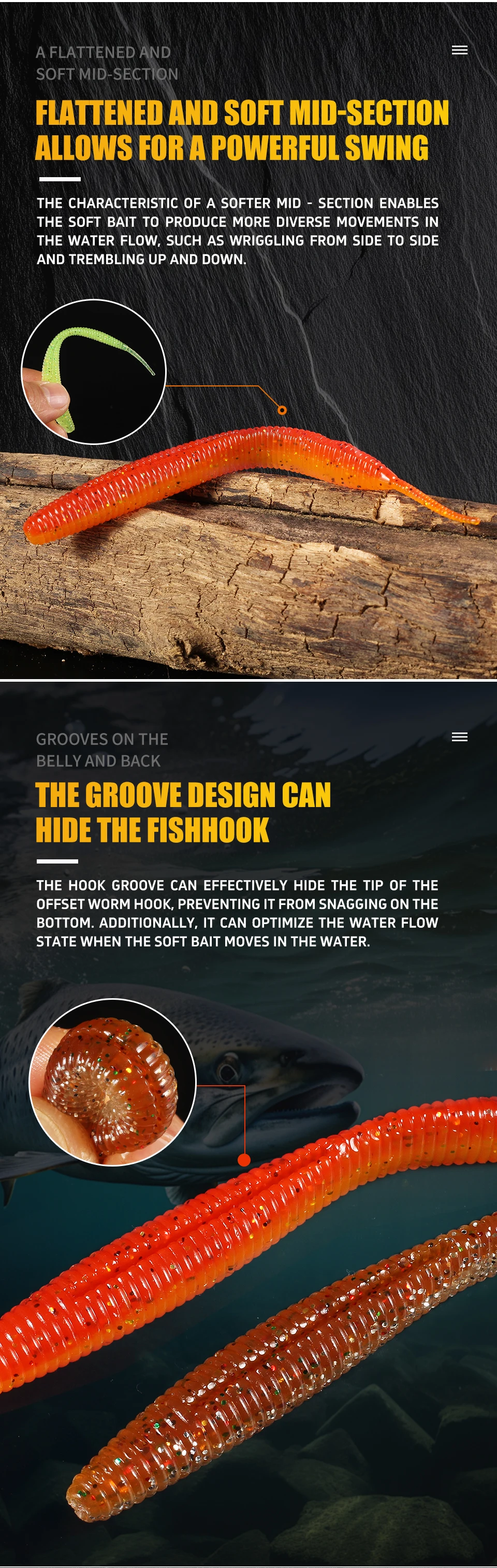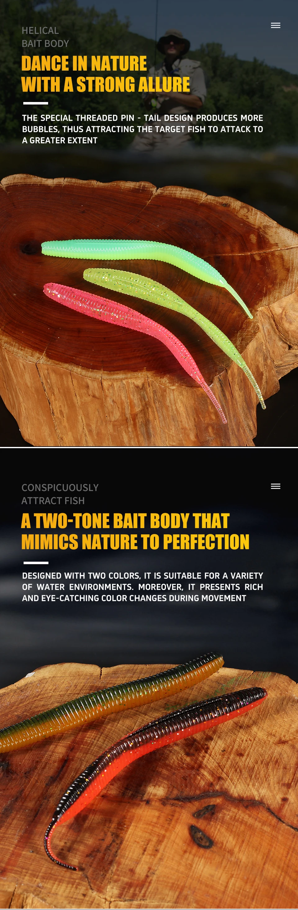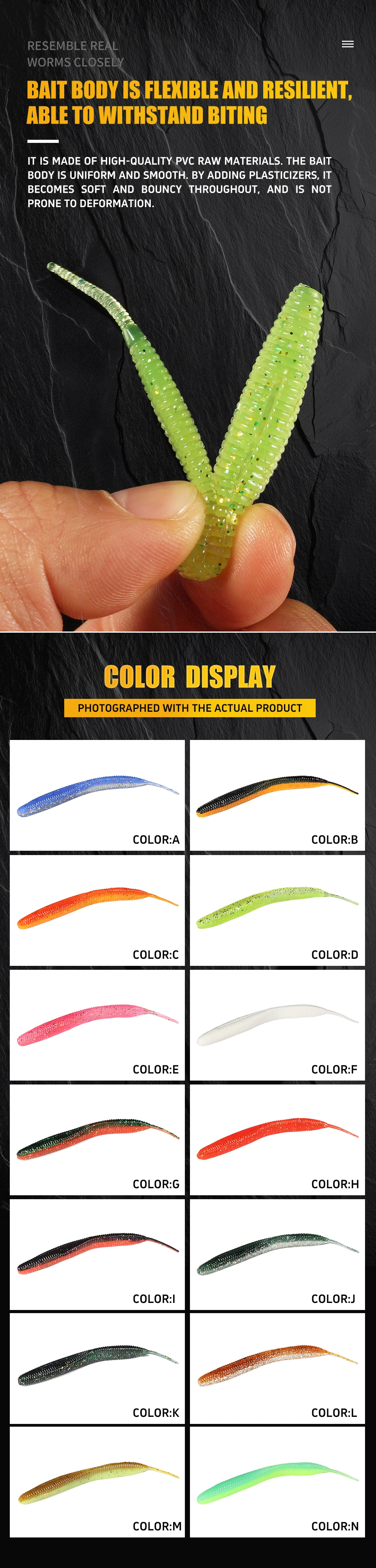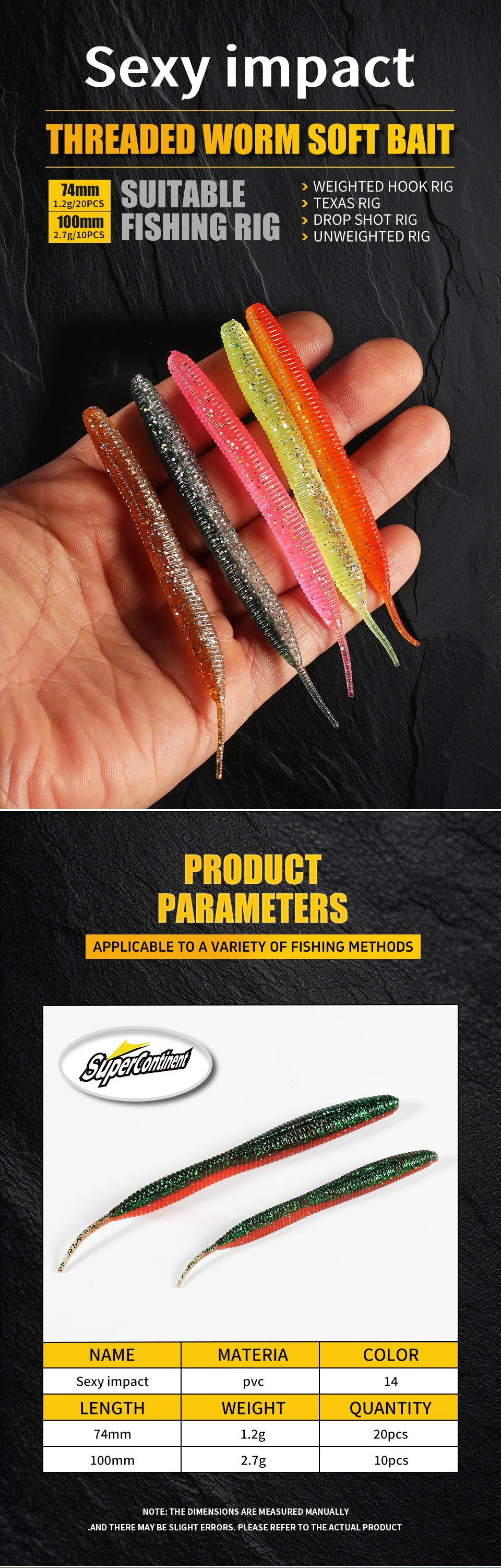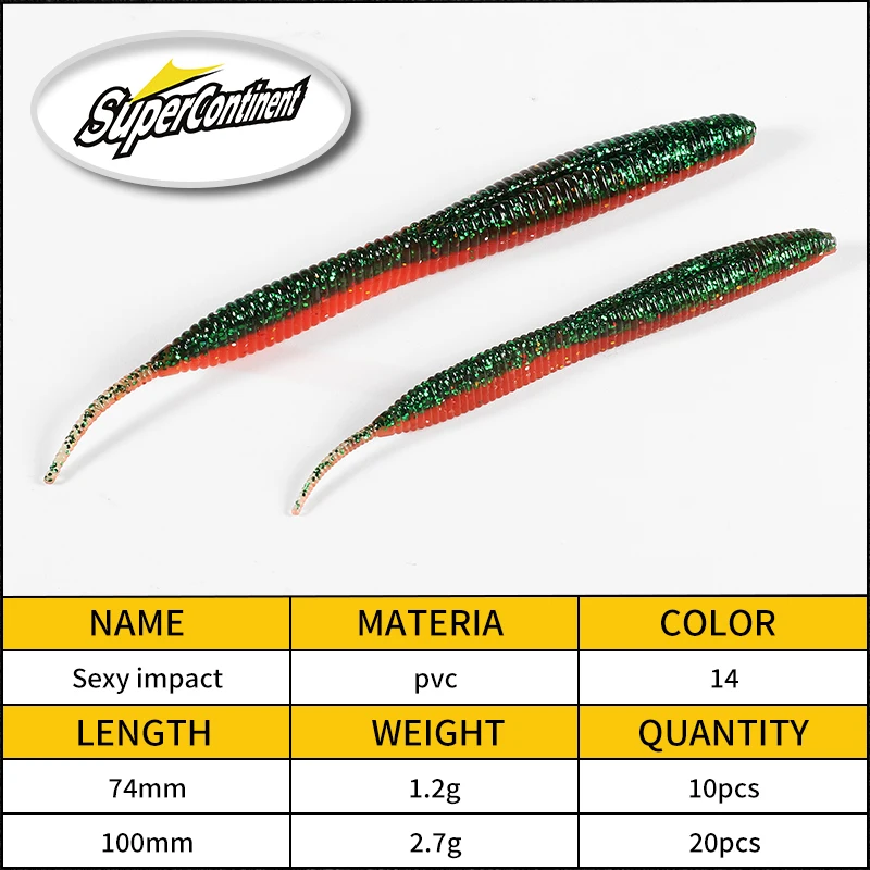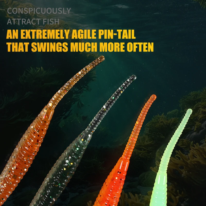 Суперконтинентальный прямой червь с игольчатым хвостом 100 мм, 10 шт., двухцветный силиконовый