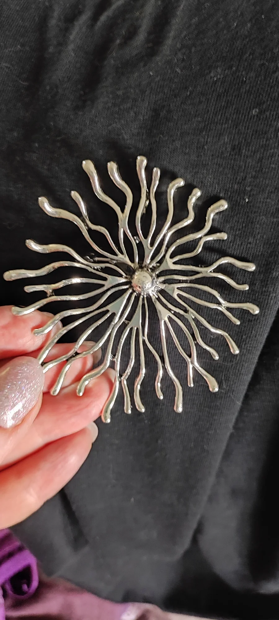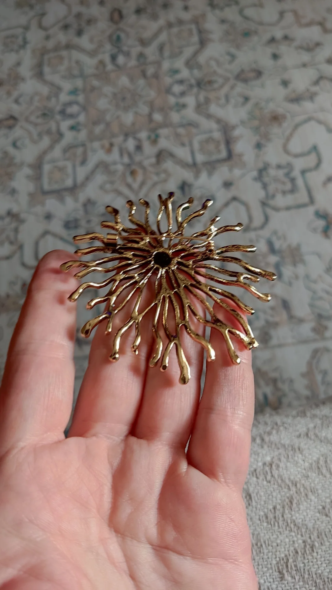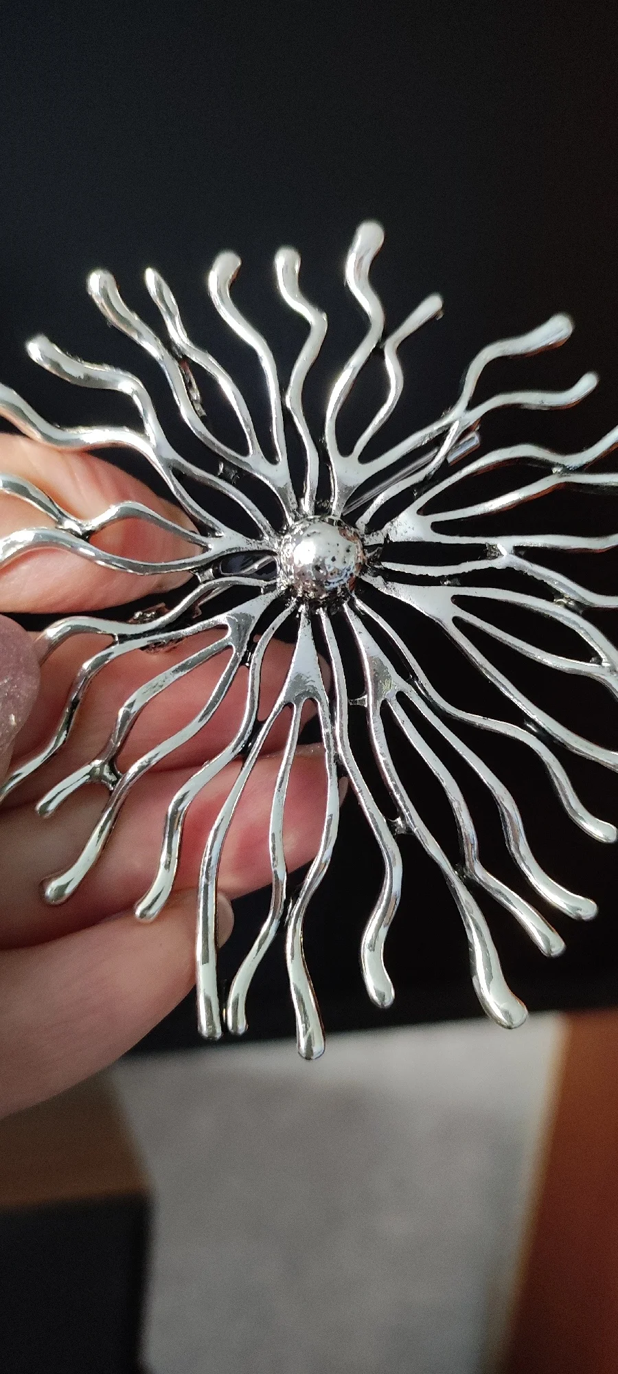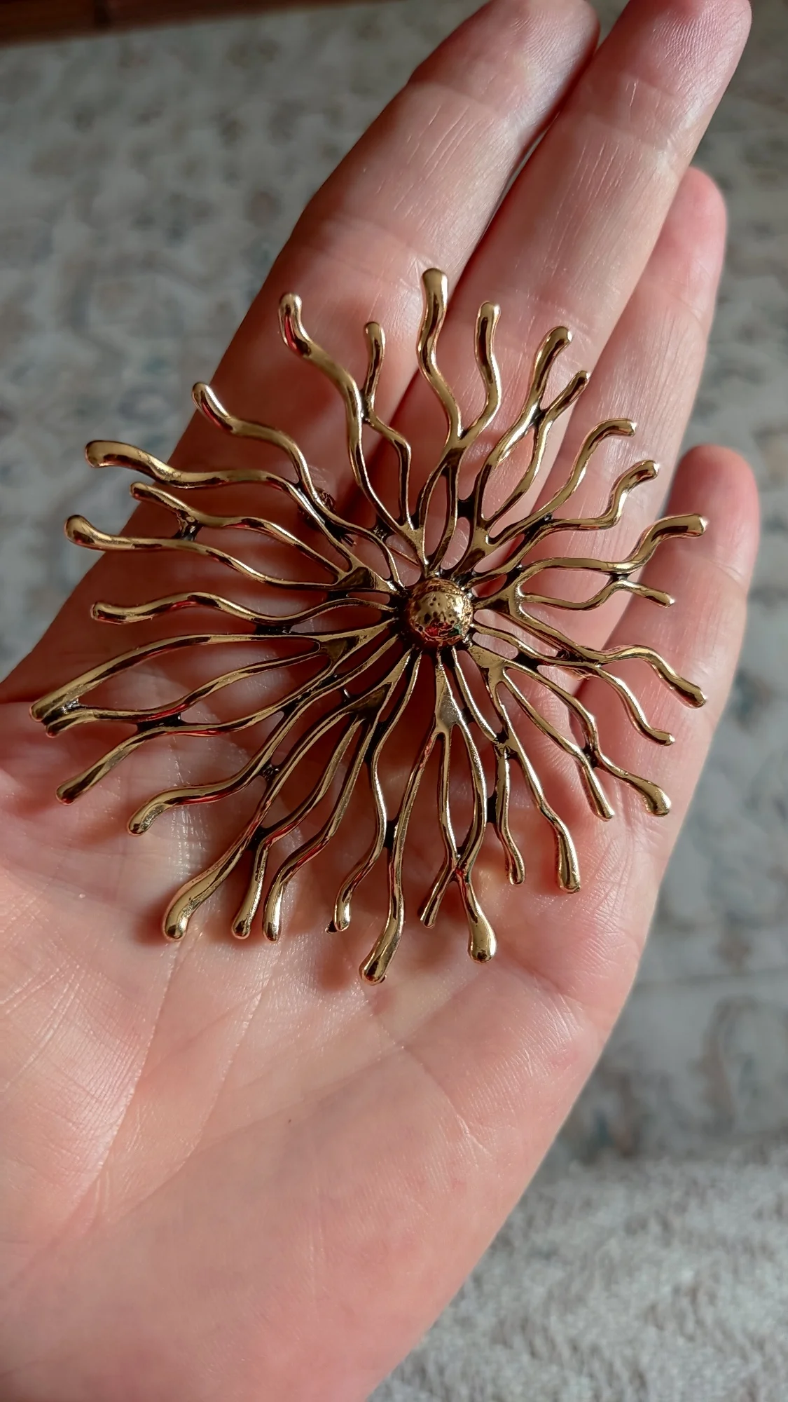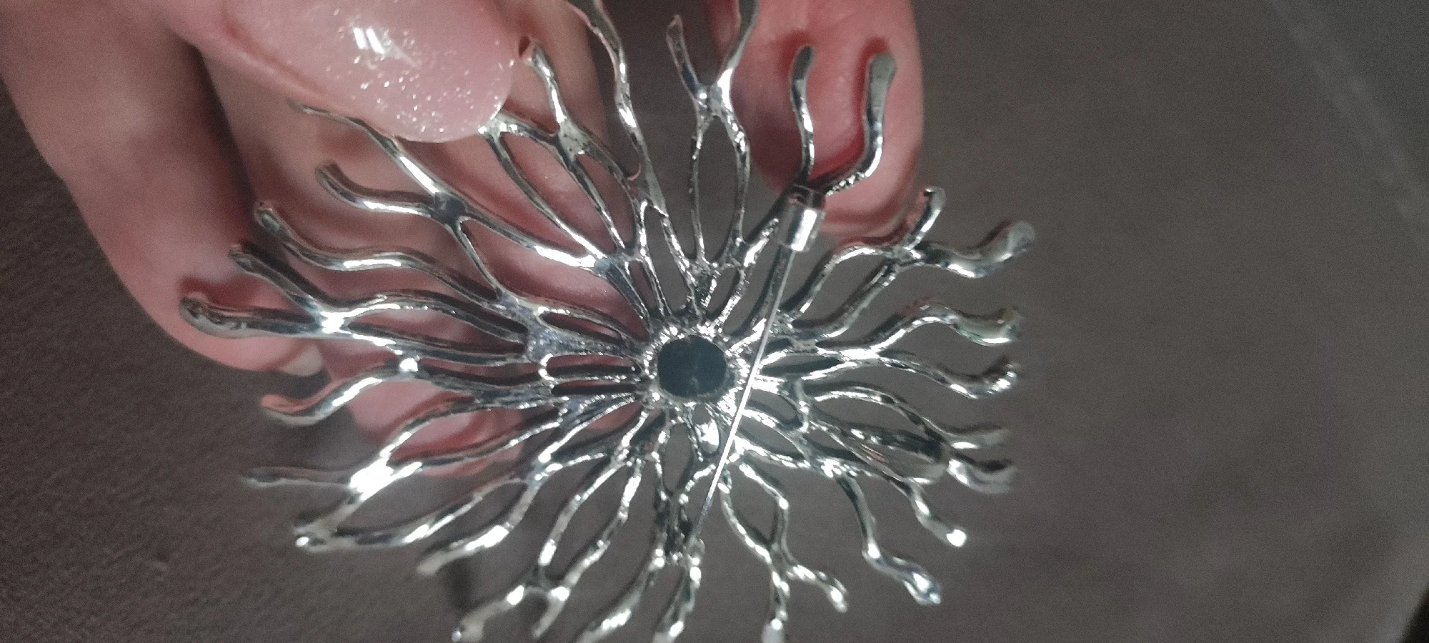 Брошь выполнена качественно - иголка острая и есть петелька, чтобы носить её как подвеску. Цвет золота под античный, с чернением. Меня лично смущает размер - очень большая! Скорее, для верхней одежды такая подойдёт, на плотную ткань. Доставка в срок. Спасибо большое!gulnara.ab.ab Г. 6 сентября 2025