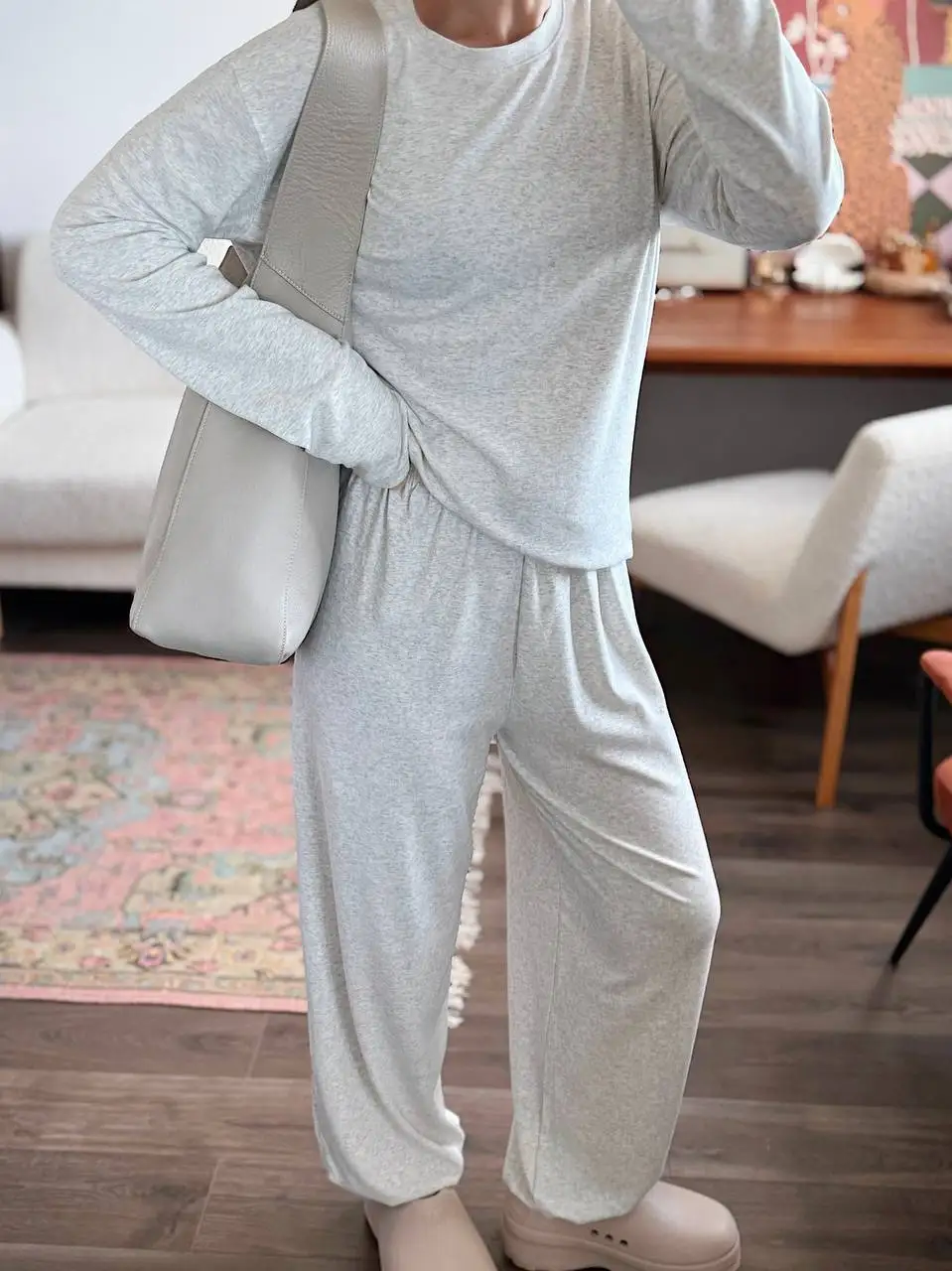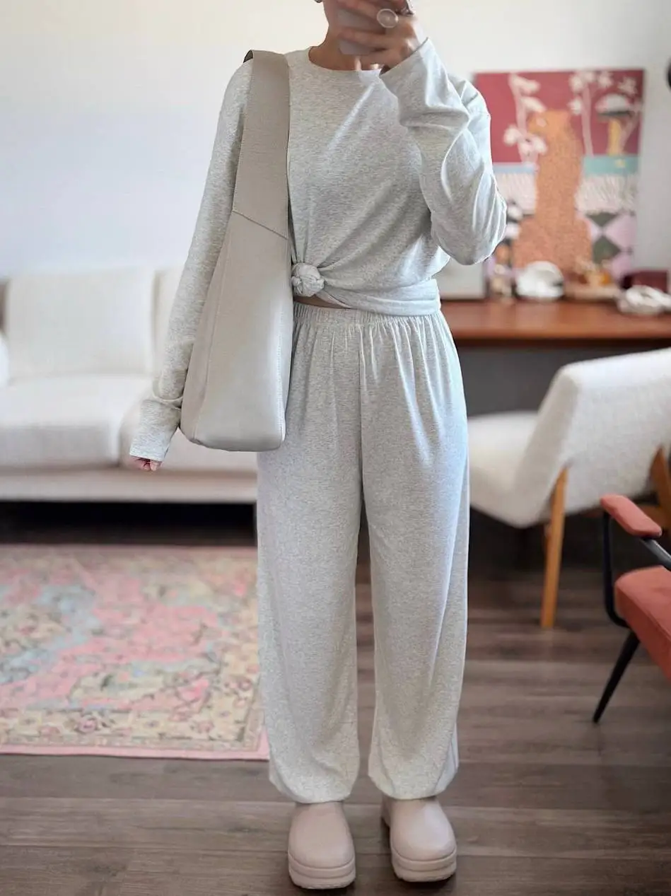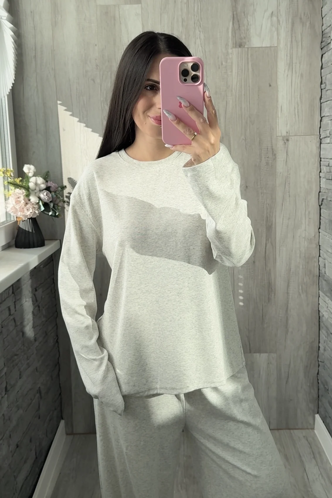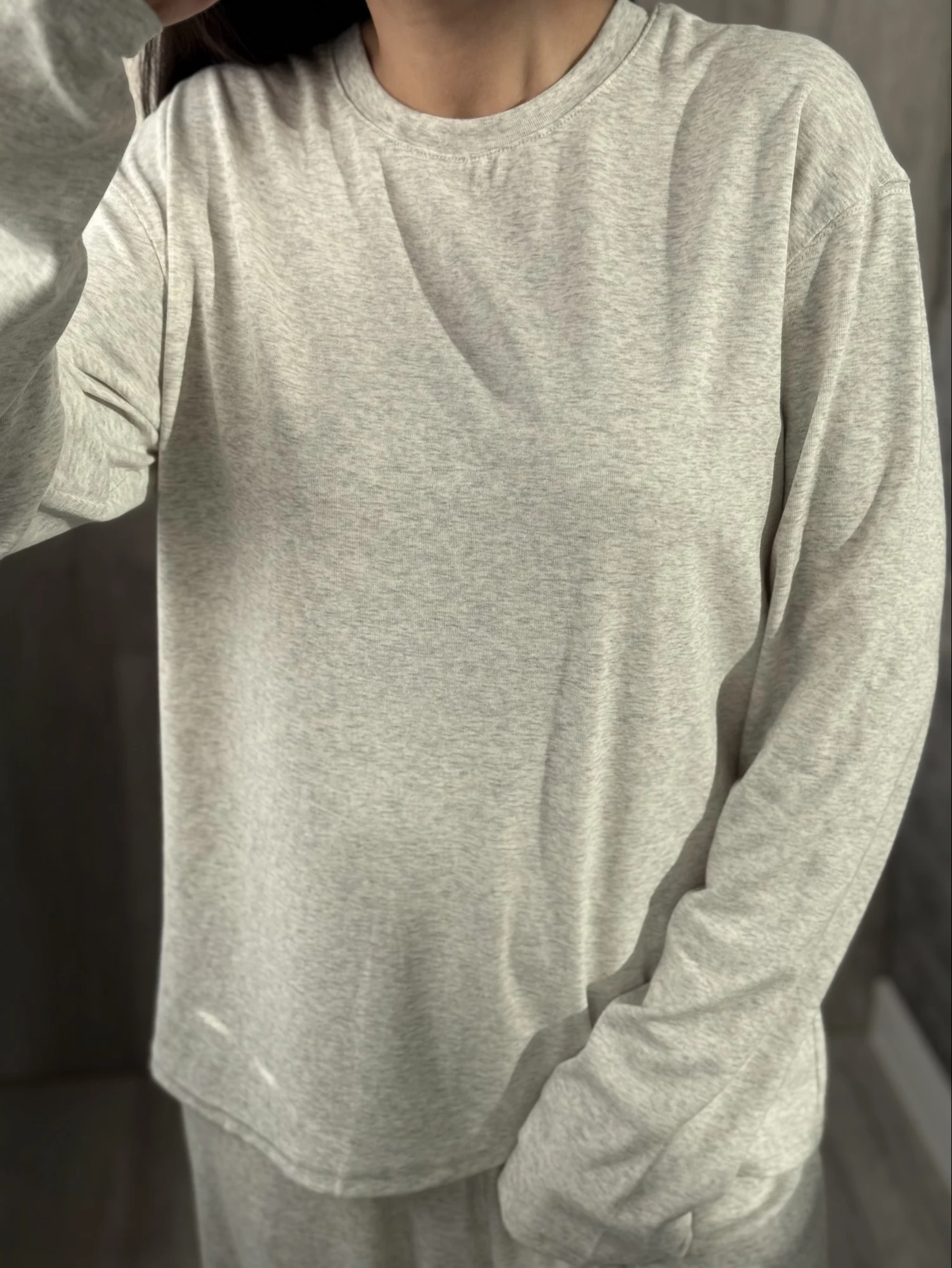 Больше ОБЗОРОВ и находок НА МОЁМ KAHAЛE Вещь из разряда: куда хочу, туда и ношу! Костюм отменно подойдёт и в качестве домашнего комплекта, и для прогулок👌🏻 — Не просвечивает — Тактильно приятный — Универсальный — Очень комфортный — Хороший состав: 46% хлопок, лиоцелл 48% и 6% эластан На мне размер S на параметры 85-57-85 см и рост 165 см Мой цвет — серый и есть ещё две расцветки на выбор Сел костюм отлично: нигде ничего не давит и не жмёт, "посадка" свободная, как и должна быть у таких костюмов Костюм не однотонный, серый меланж Благодаря тому, что в составе не чистый хлопок, а есть и лиоцелл, комплект особо не мнётся Лонг и брюки-джоггеры можно смело сочетать с другими вещами гардероба Длина с запасом и у верха, и у низ Так что высоким девушкам настоятельно рекомендую присмотреться к данному комплекту Качество исполнения на высшем уровне! Костюм отменно пошит: ровные строчки, нет торчащих ниток Вещь отменная, в фабричном исполнении К покупке смело советую!