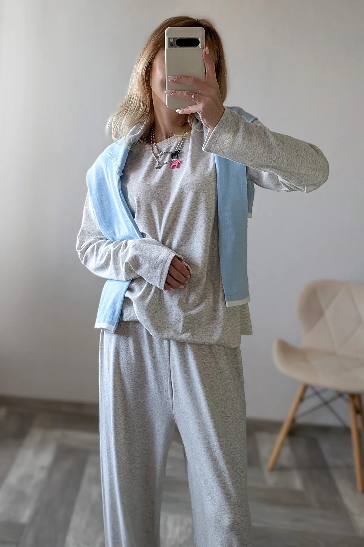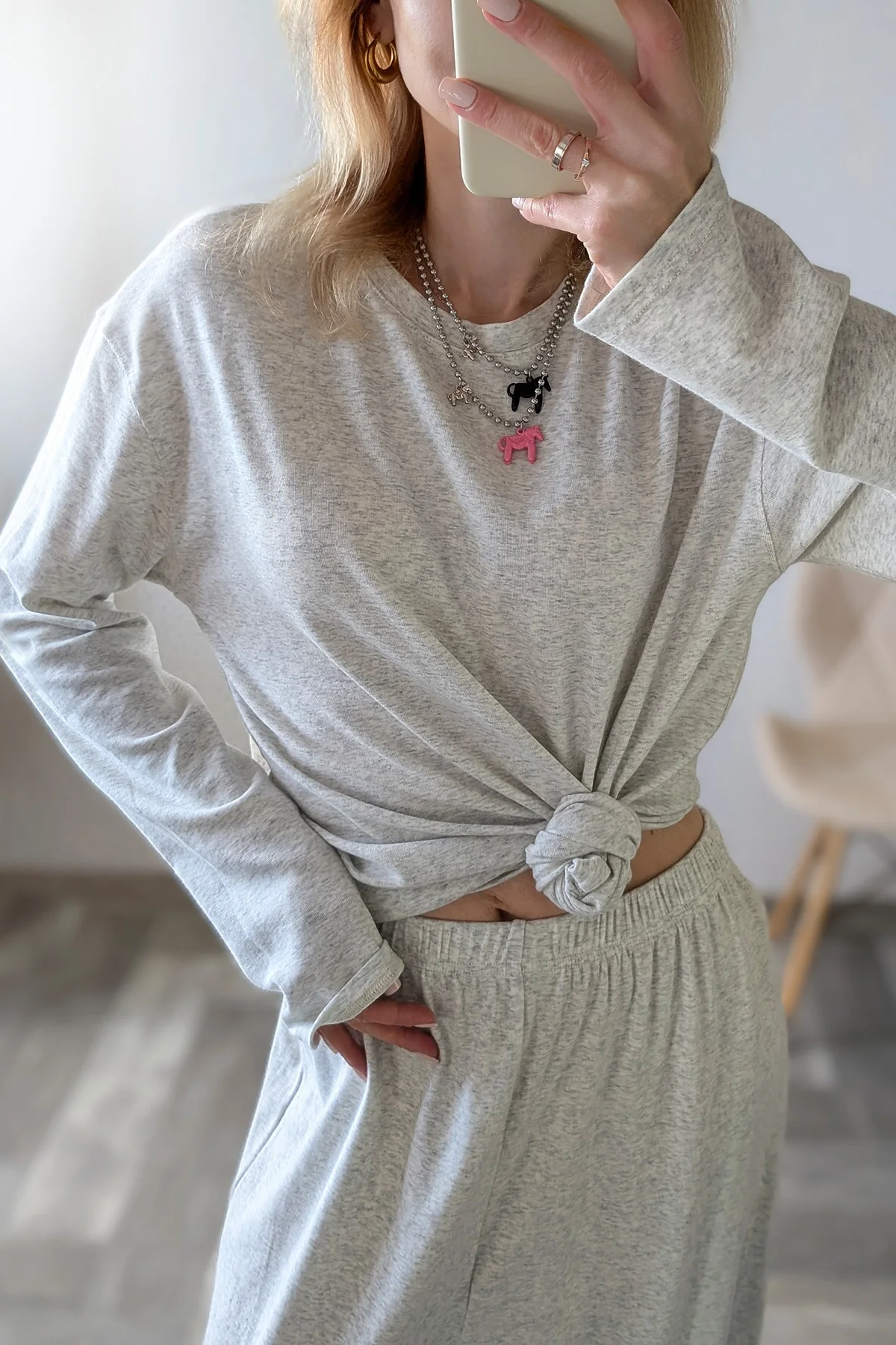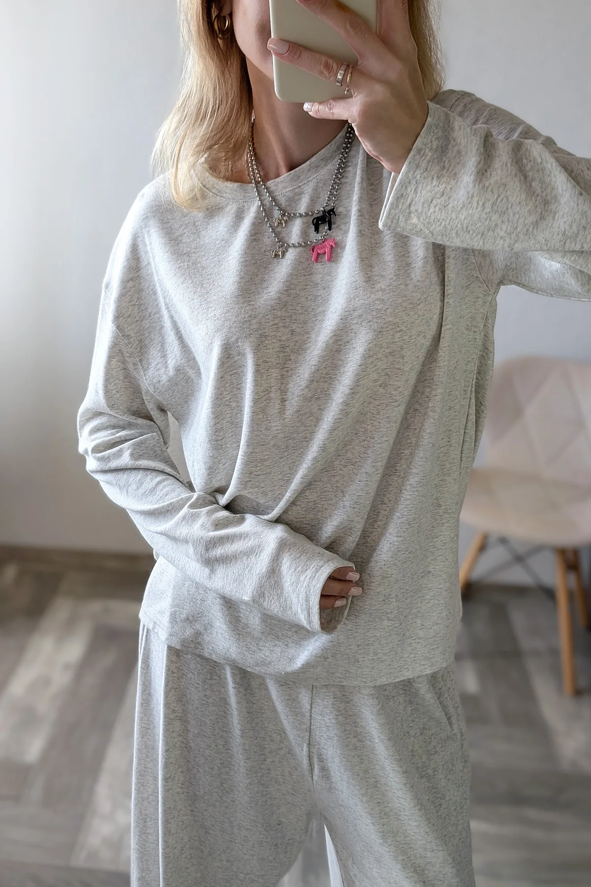 Больше ОБЗОРОВ и находок НА МОЁМ KAHAЛE Вещь из разряда: куда хочу, туда и ношу! Костюм отменно подойдёт и в качестве домашнего комплекта, и для прогулок👌🏻 — Не просвечивает — Тактильно приятный — Универсальный — Очень комфортный — Хороший состав: 46% хлопок, лиоцелл 48% и 6% эластан На мне размер S на параметры 85-57-85 см и рост 165 см Мой цвет — серый и есть ещё две расцветки на выбор Сел костюм отлично: нигде ничего не давит и не жмёт, "посадка" свободная, как и должна быть у таких костюмов Костюм не однотонный, серый меланж Благодаря тому, что в составе не чистый хлопок, а есть и лиоцелл, комплект особо не мнётся Лонг и брюки-джоггеры можно смело сочетать с другими вещами гардероба Длина с запасом и у верха, и у низ Так что высоким девушкам настоятельно рекомендую присмотреться к данному комплекту Качество исполнения на высшем уровне! Костюм отменно пошит: ровные строчки, нет торчащих ниток Вещь отменная, в фабричном исполнении К покупке смело советую!