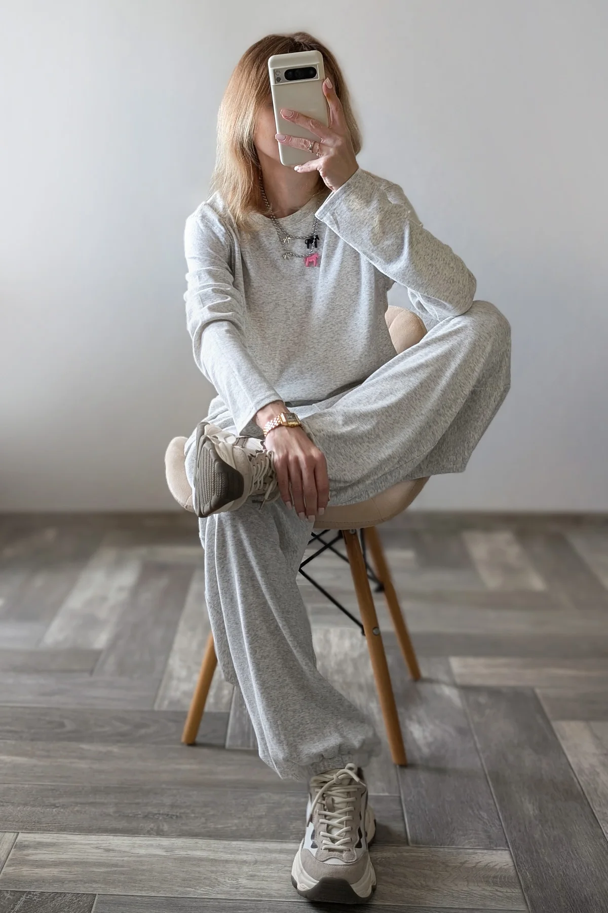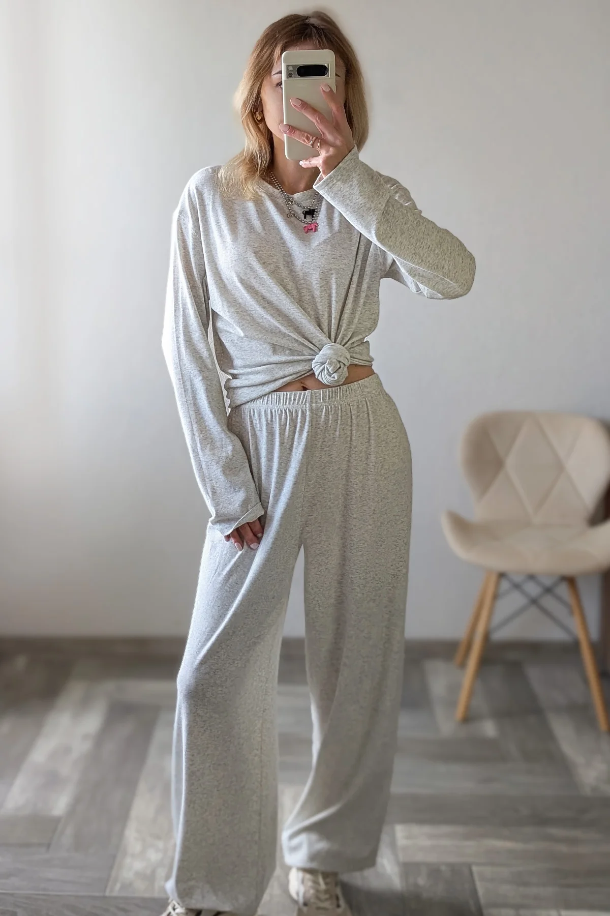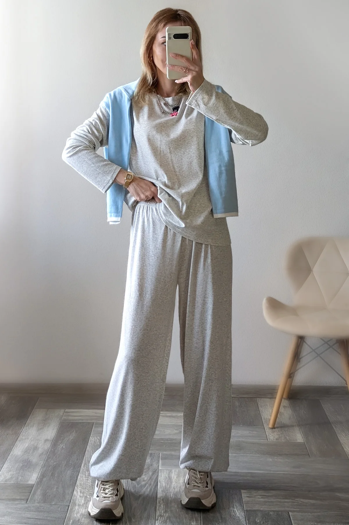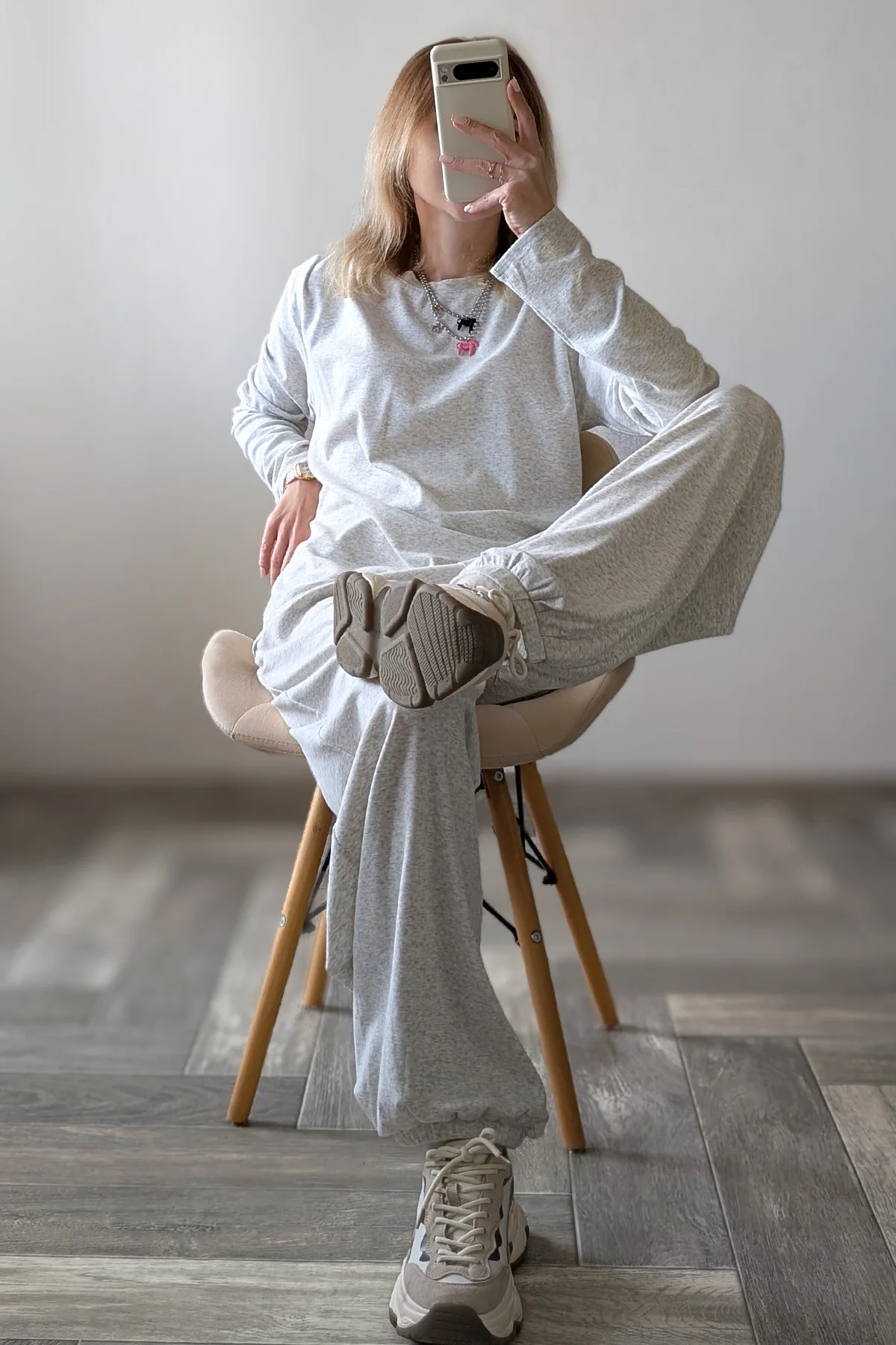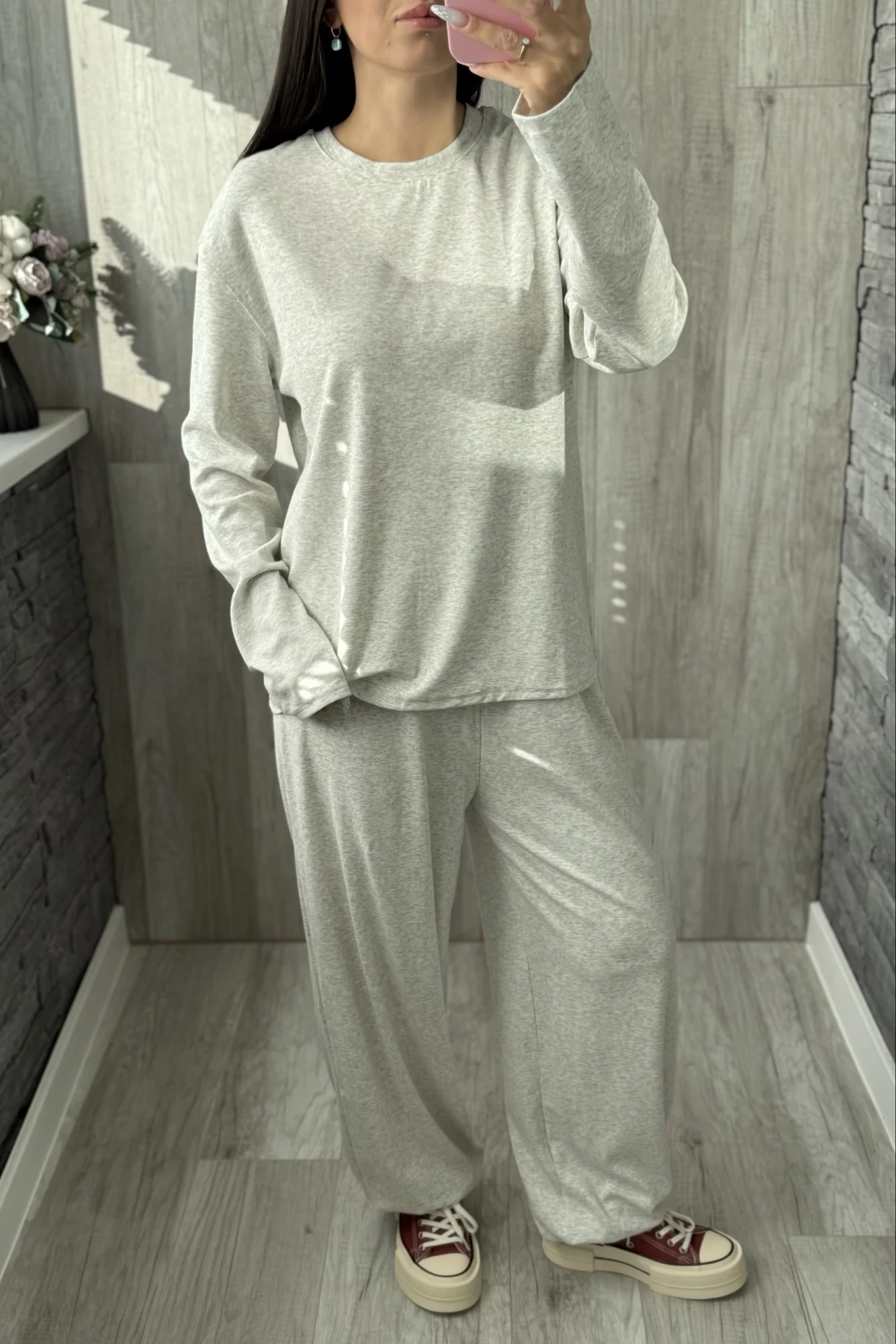 Наконец-то найден костюм в сером оттенке, чтобы его не было стыдно выгулять в городе. Потому как любви с популярными джоггерами от другого продавца у меня не случилось. Здесь же все идеально 😍 Плотность материала позволяет его носить на улице, ткань не просвечивается! Приятный состав: 46% хлопок, лиоцелл 48% и 6% эластан. Пока снимала обзор, было очень жарко, солнце палило в лицо, но в этом костюме даже не было намека на то, что я вспотела. Простите за подробности, просто не знаю, как еще объяснить то, что материал невероятно комфортный и не душный. Вся одежда у UK Fashion примерно на рост от 165, но не смотря на то, что я 158 и штаны мне длинные, я из этого костюма не вылезу (лишь подверну резинку на талии). Ну действительно очень классный и удобный. Размер S на 92-66-90 везде сел с большим запасом. Резинка на талии от души тянется. Лишь не хватает карманов, но я готова это простить, потому что костюм балдежный. По поводу цвета : он не холодный, скорее теплый меланж. Очень хочу теперь и в других оттенках. Потому что такие костюмы уже бесспорная база. Свою стоимость полностью оправдывает, никакие питкины тут и рядом не стояли. Так что берите , особенно высоким девушкам будет очень классно