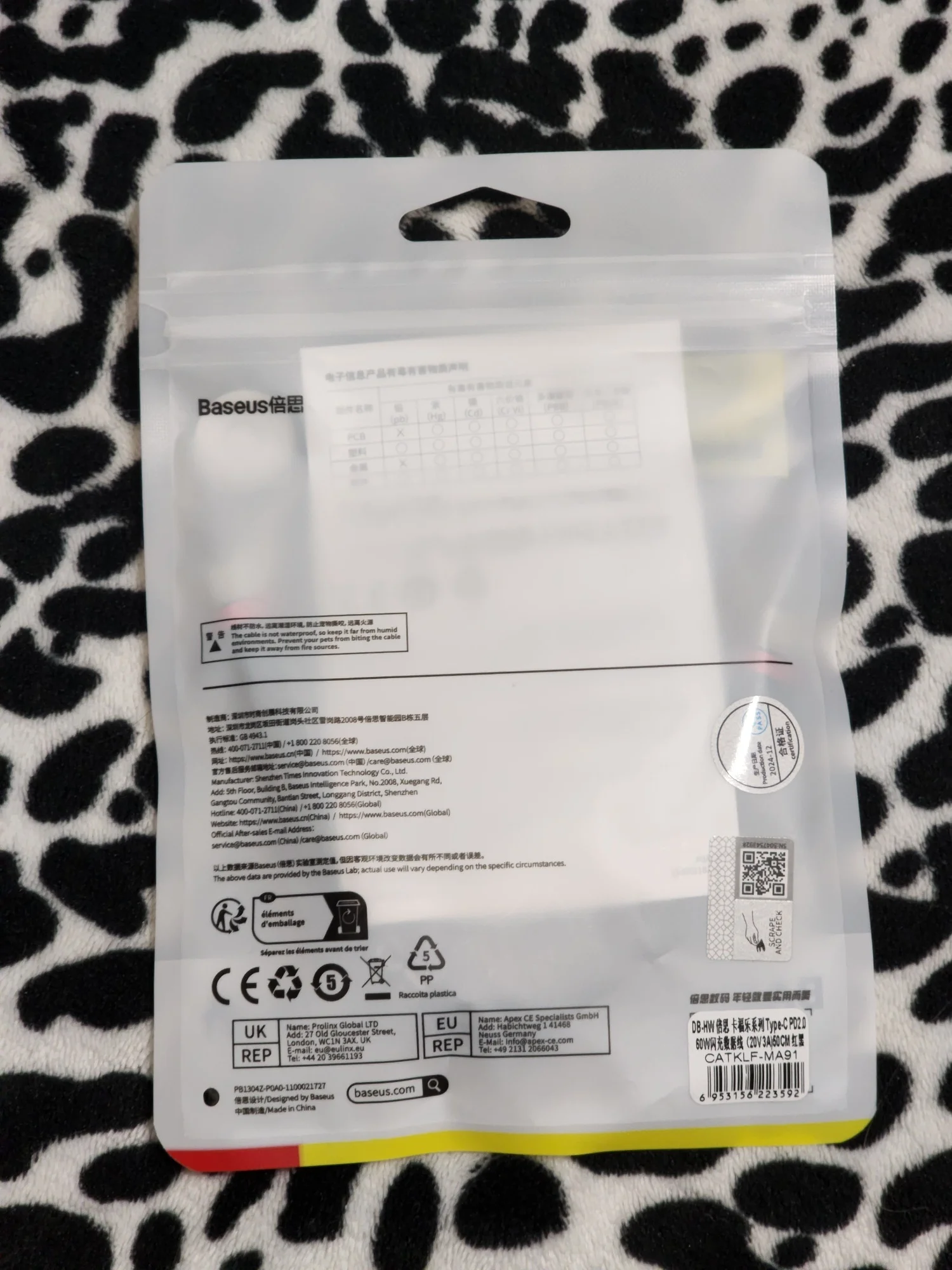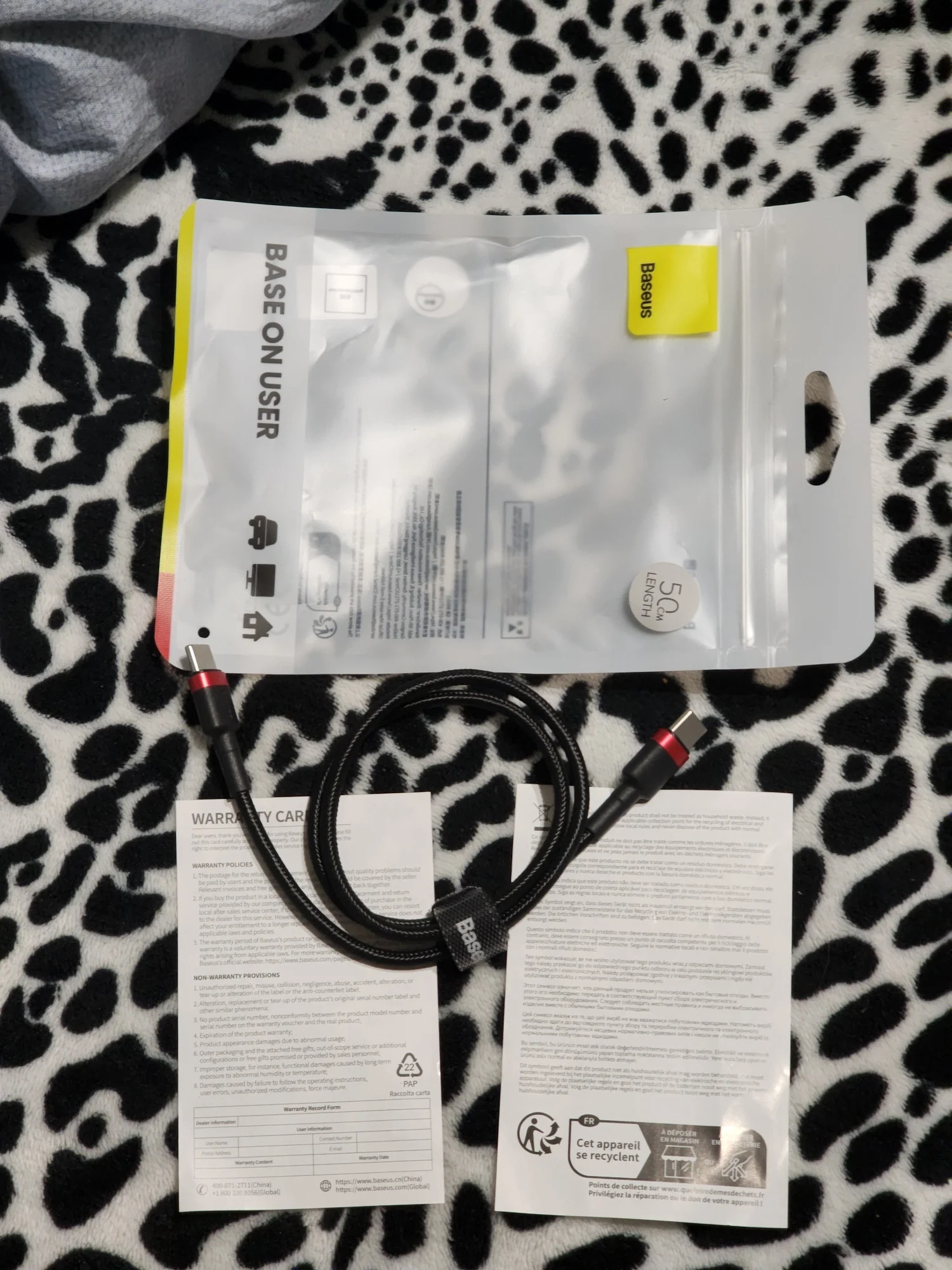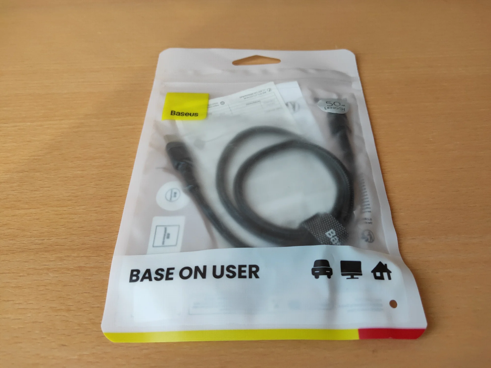 Кабель упакован в полупрозрачный полиэтиленовый пакет. Разъёмы USB промаркированы надписью Baseus. Смотанный кабель скрепляется лентой-липучкой, также с надписью Baseus, удобно её использовать, когда убираешь кабель в сумку. До Москвы доехал за 13 дней. Упаковка – могла бы быть лучше. Мне больше понравилась картонная упаковка для кабеля Baseus на 240W.Vadim P. 13 августа 2025