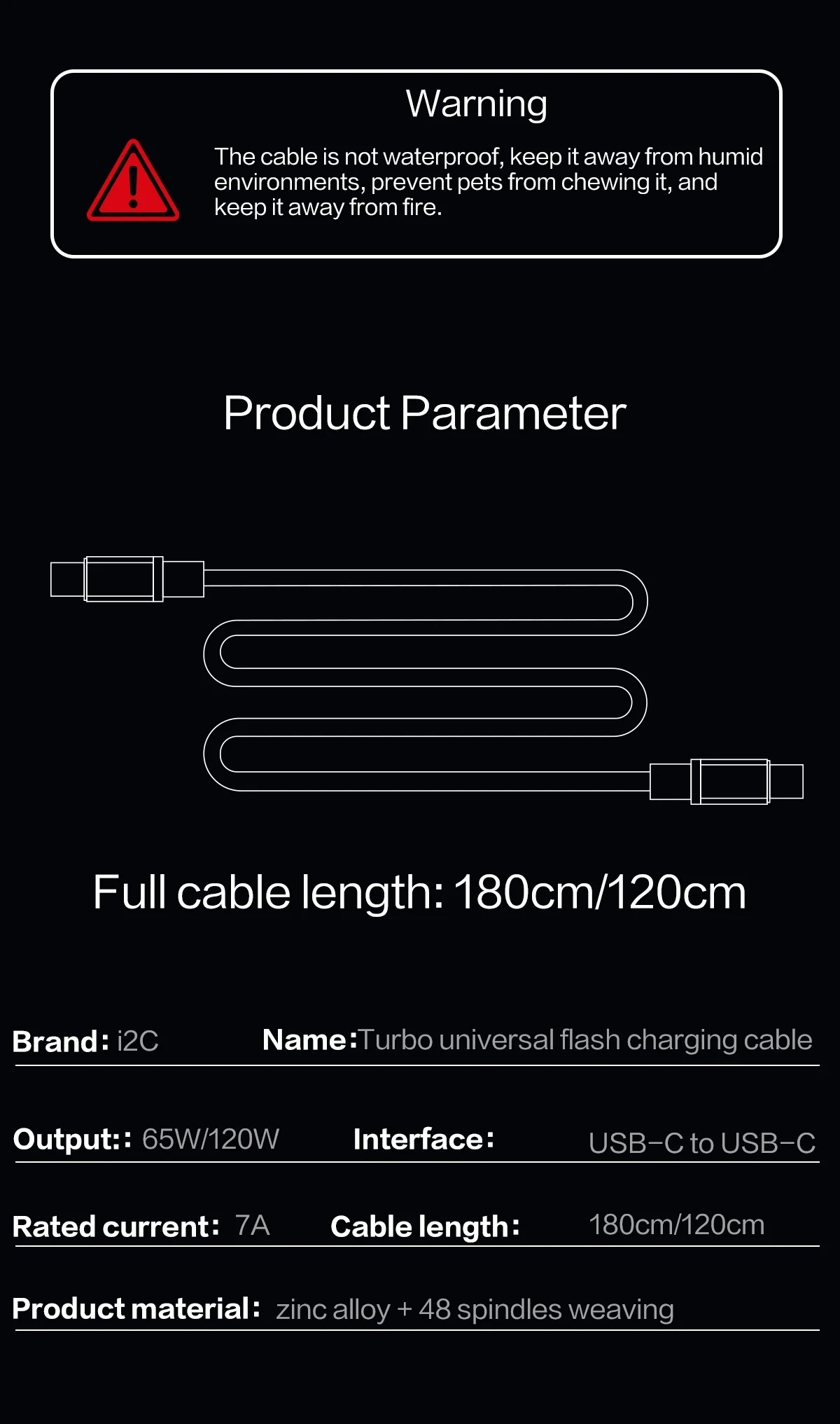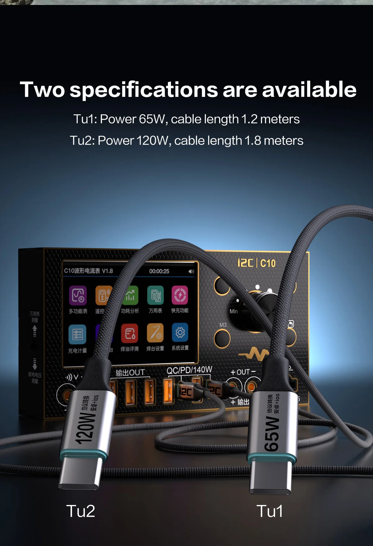 - Номер модели:I2C Turbo TU1 TU2 1.2/1.8 Meters 65W 120W
