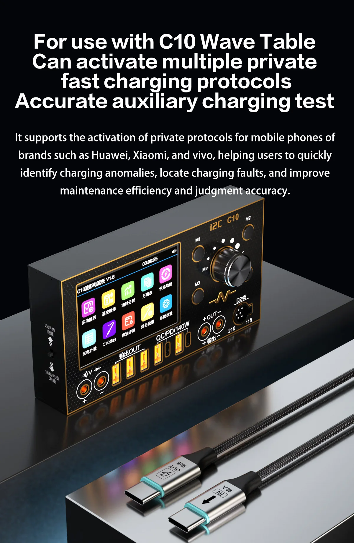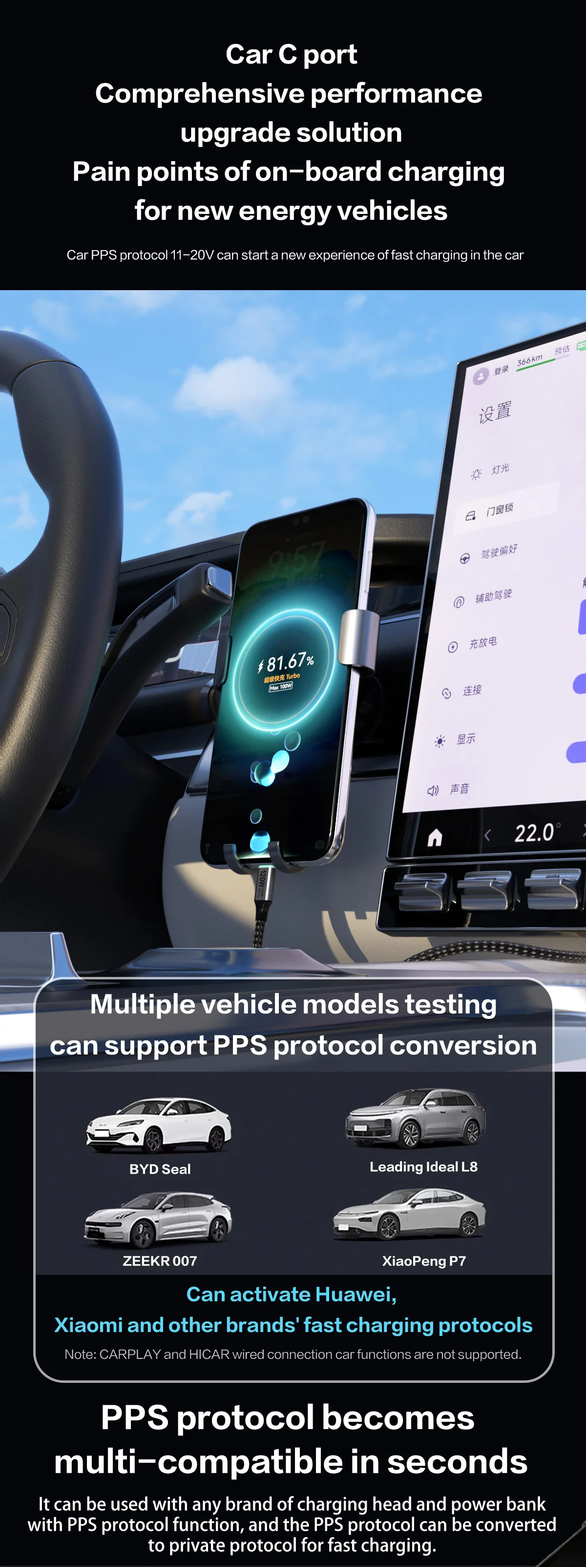 4.Этот кабель для передачи данных поддерживает протокол PPS в автомобиле 11 20 В и подходит для транспортных средств на новых источниках энергии, таких как BYD, Ideal и Xiaopeng, решая болевые точки зарядки автомобилей с новой энергетикой.