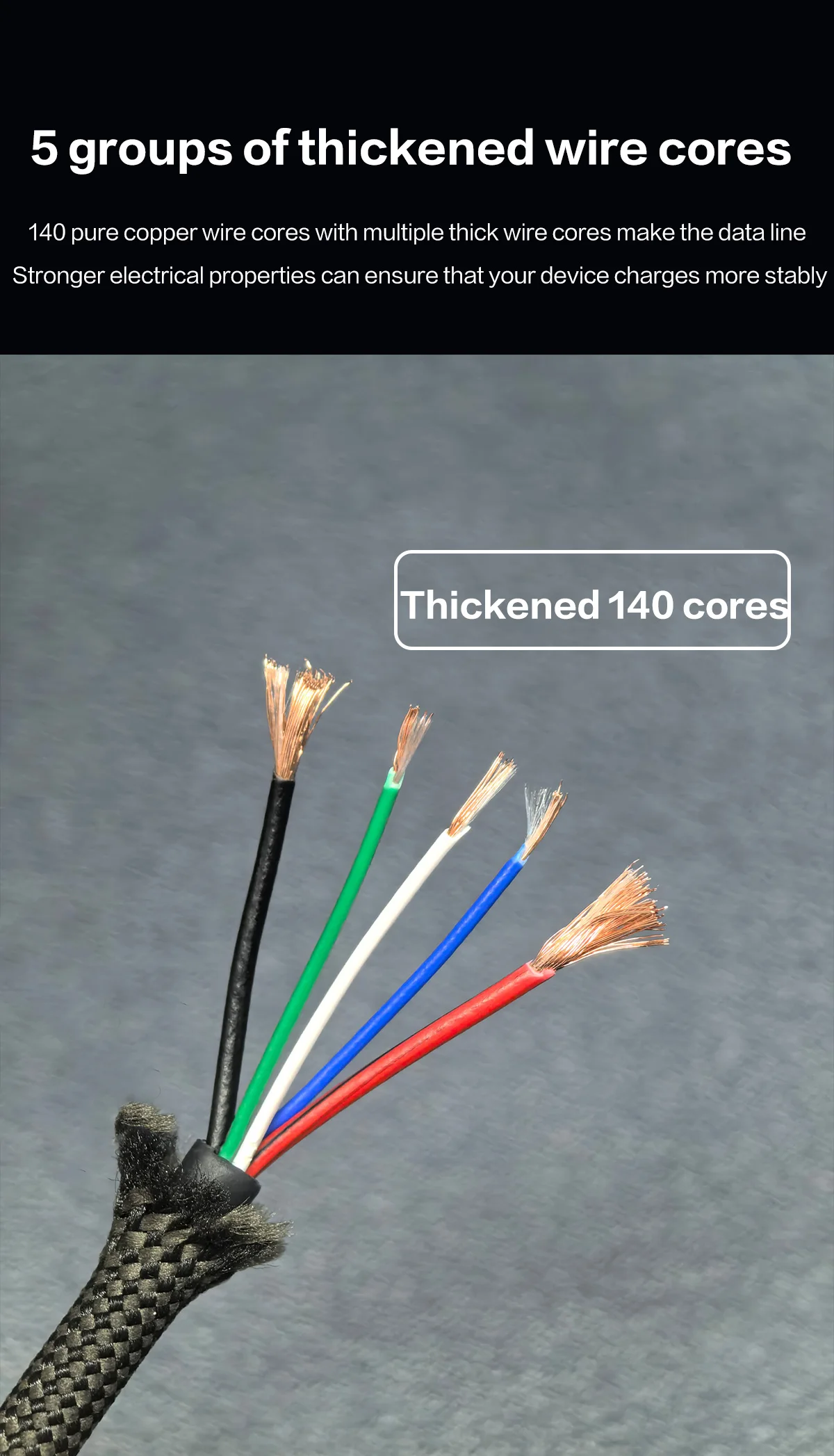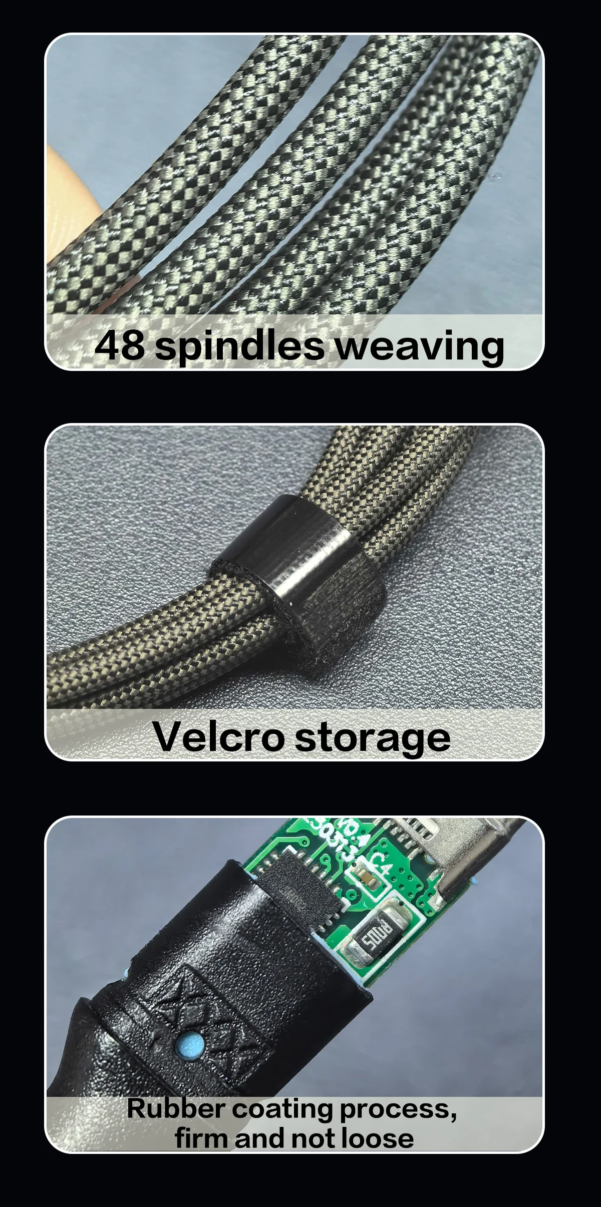 2.В кабеле для передачи данных используется оболочка из цинкового сплава и плетеная проволока с 48 шпинделями, а корпус провода более износостойкий и долговечный; Хранение на липучке и процесс резинового покрытия делают провод более прочным, его нелегко ослабить и он более удобен в организации.