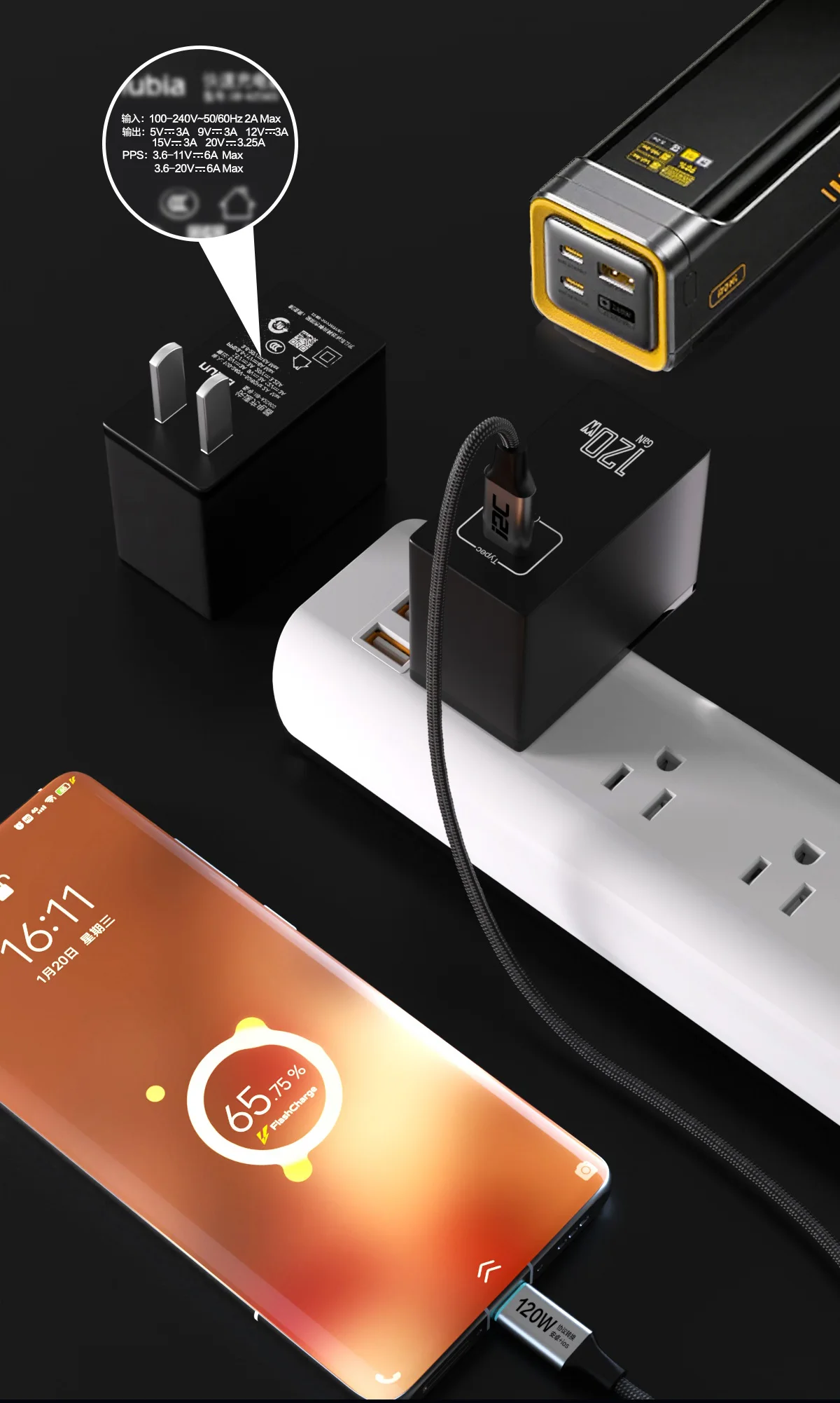 - Output power:65W/1 20W