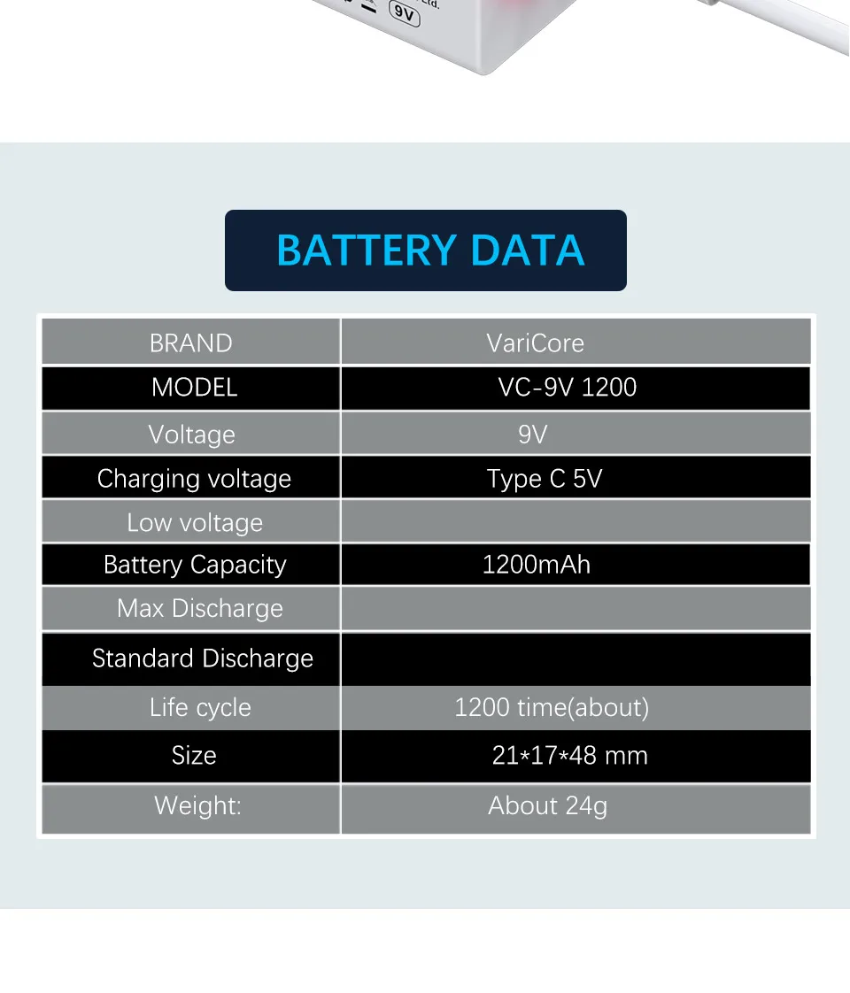 VariCore 9V 1200mAh литий-ионный аккумулятор