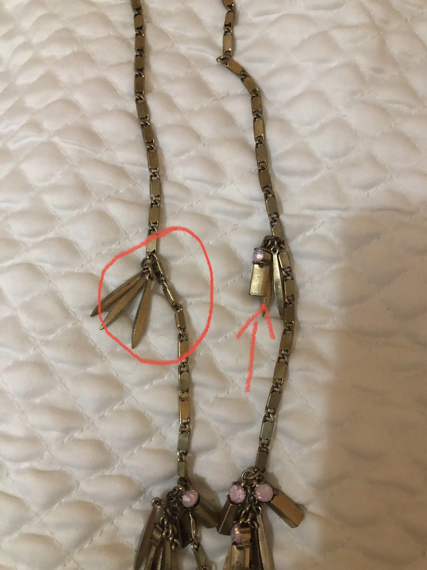 Мне не повезло с этим ожерельем, оно всё перекрученное и облезлое.