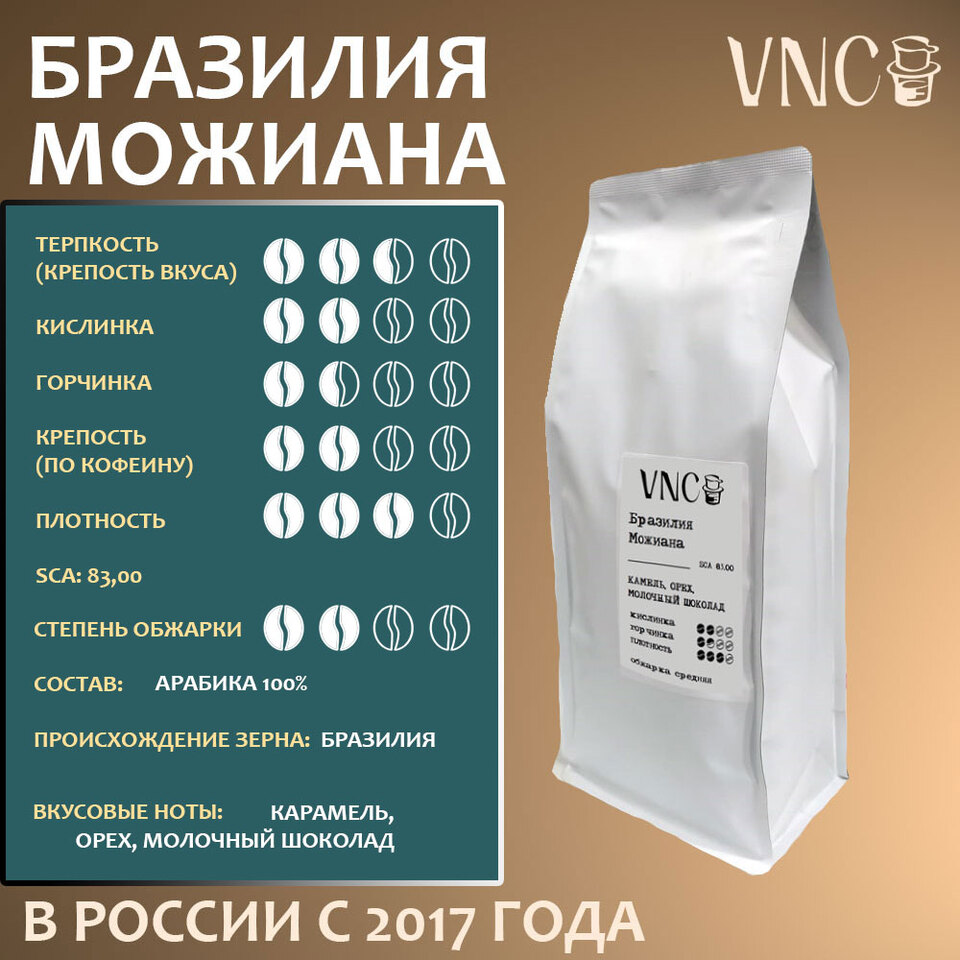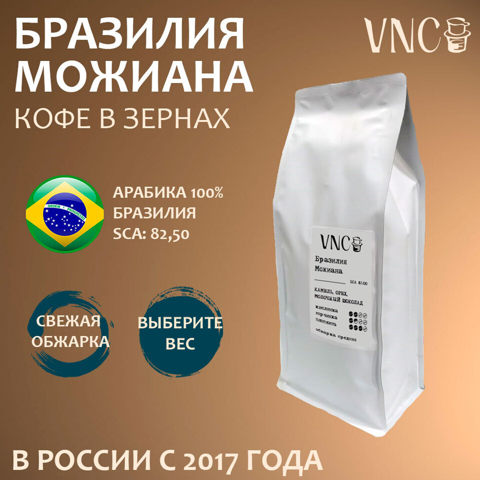 Кофе в зернах "Бразилия Можиана" VNC, свежая обжарка, эспрессо, турка, мока, (Brazil Mogiana) выбор веса - 250 г, 500 г, 1 кг