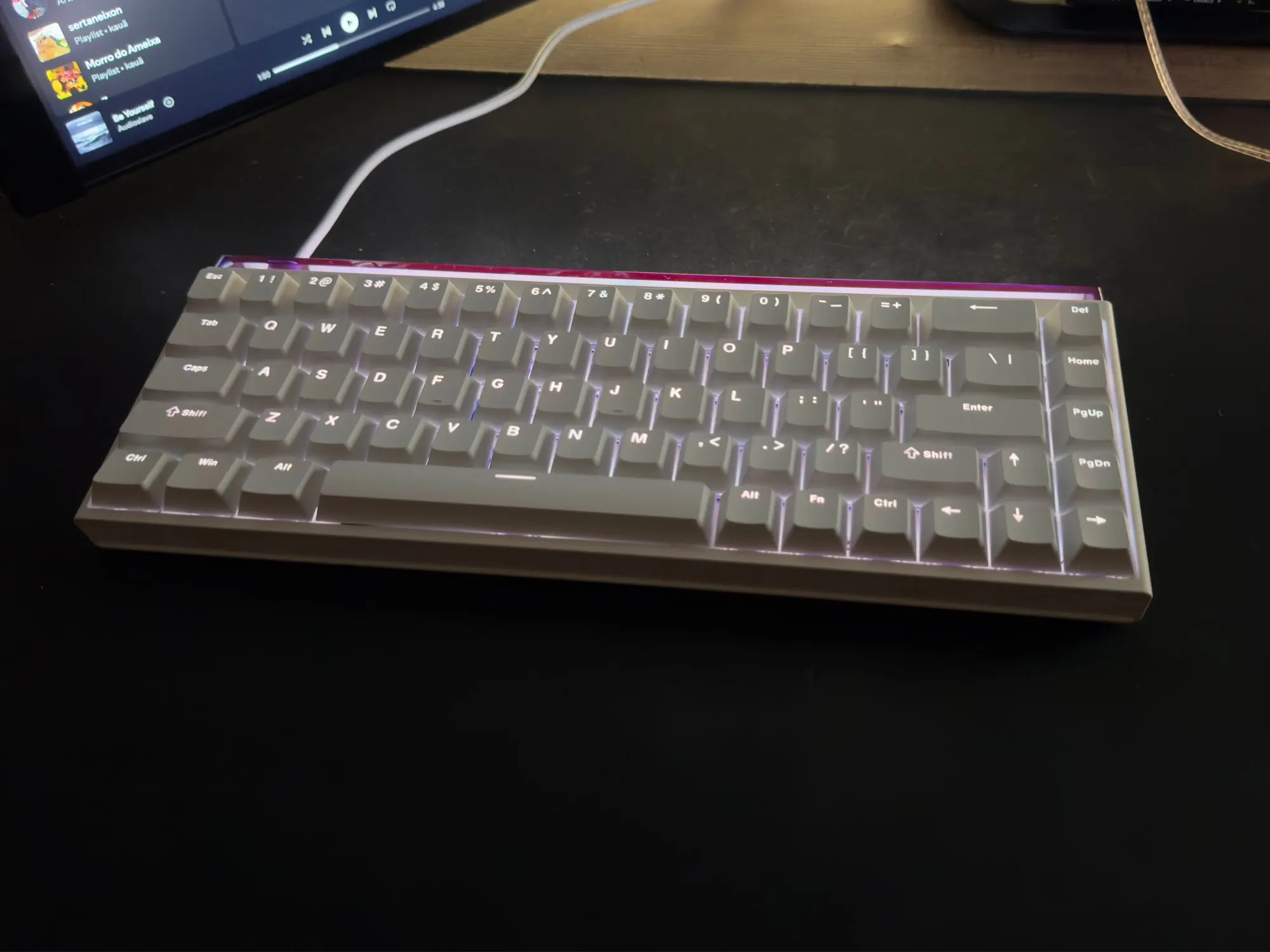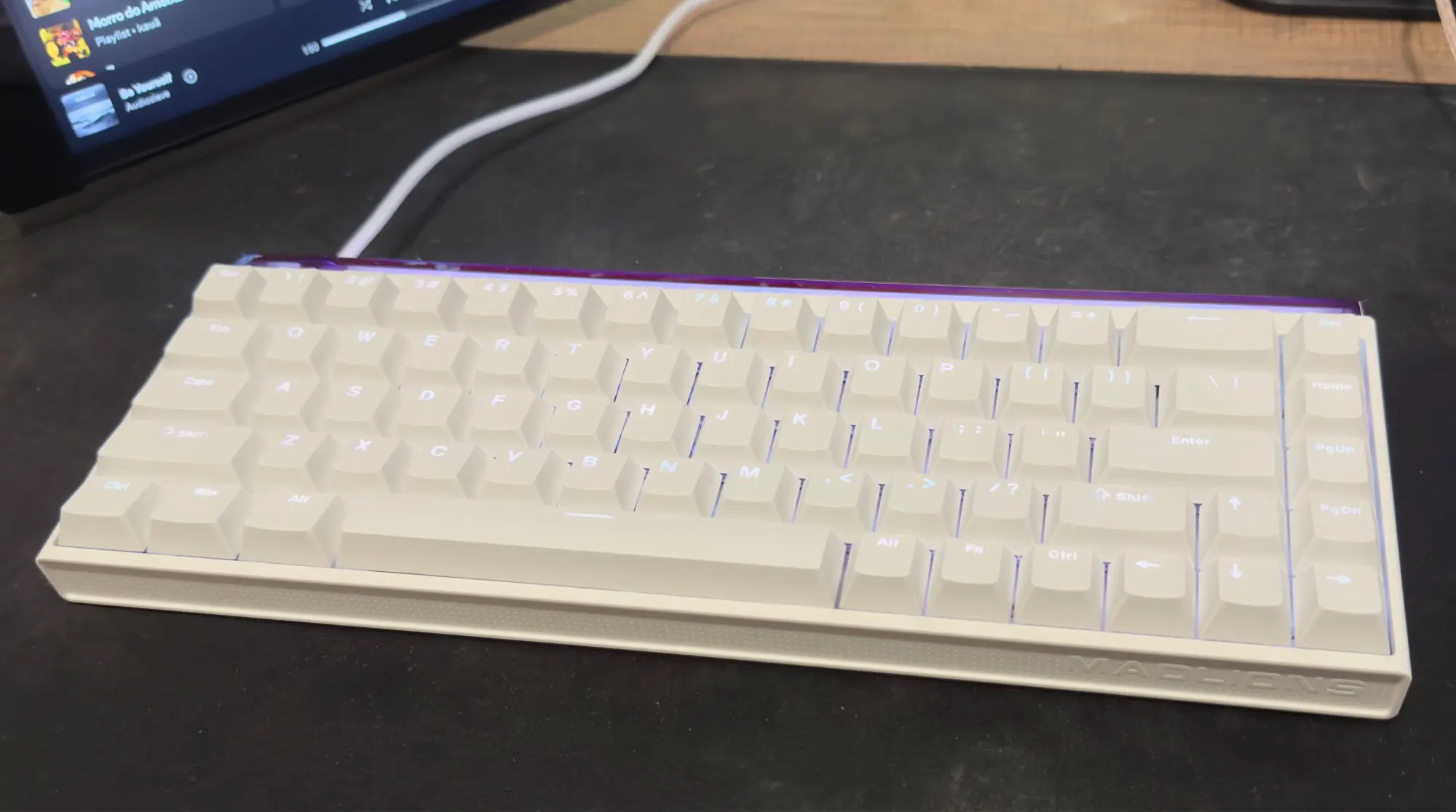 Очень хорошая клавиатура, очень удобный набор текста, звук вполне приличный, передает ощущение отличного качества и, очевидно, сильно выделяется внешне, она очень красивая и сильно отличается от обычных клавиатур. Его освещение разочаровывает, в освещенной среде он становится слишком слабым, в темноте, пока все не в порядке, но меня это не волнует. Уже реальная проблема, это будет кабель, который идет, я нашел его очень коротким, он должен быть чуть более 1 м, что-то очень неудобно, видя, что мой стол составляет около 2 м, но ничего, что покупка кабеля снаружи не решает. Я очень рекомендую, за эту цену, он предлагает очень удовлетворительное качество!