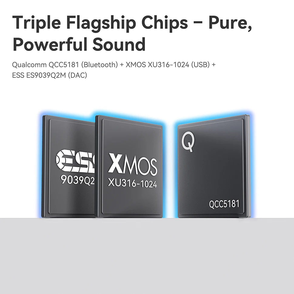 Тройные флагманские чипы для звука студийного качества беспроводной декодер Qualcomm QCC5181, USB-чип XMOS XU316-1024 и ЦАП ESS9039Q2M с динамическим диапазоном до 130 дБ. Tea Pro поддерживает усовершенствованные аудиокодексы aptX без потерь для обеспечения точной, кристально чистой. и реалистичный звук как будто на живой производительности, даже по беспроводной сети.