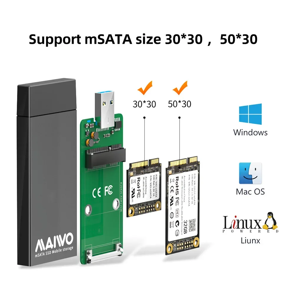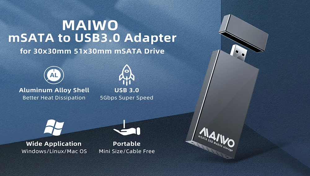 Maiwo K1642S алюминиевый корпус для mSATA SSD USB 3.0