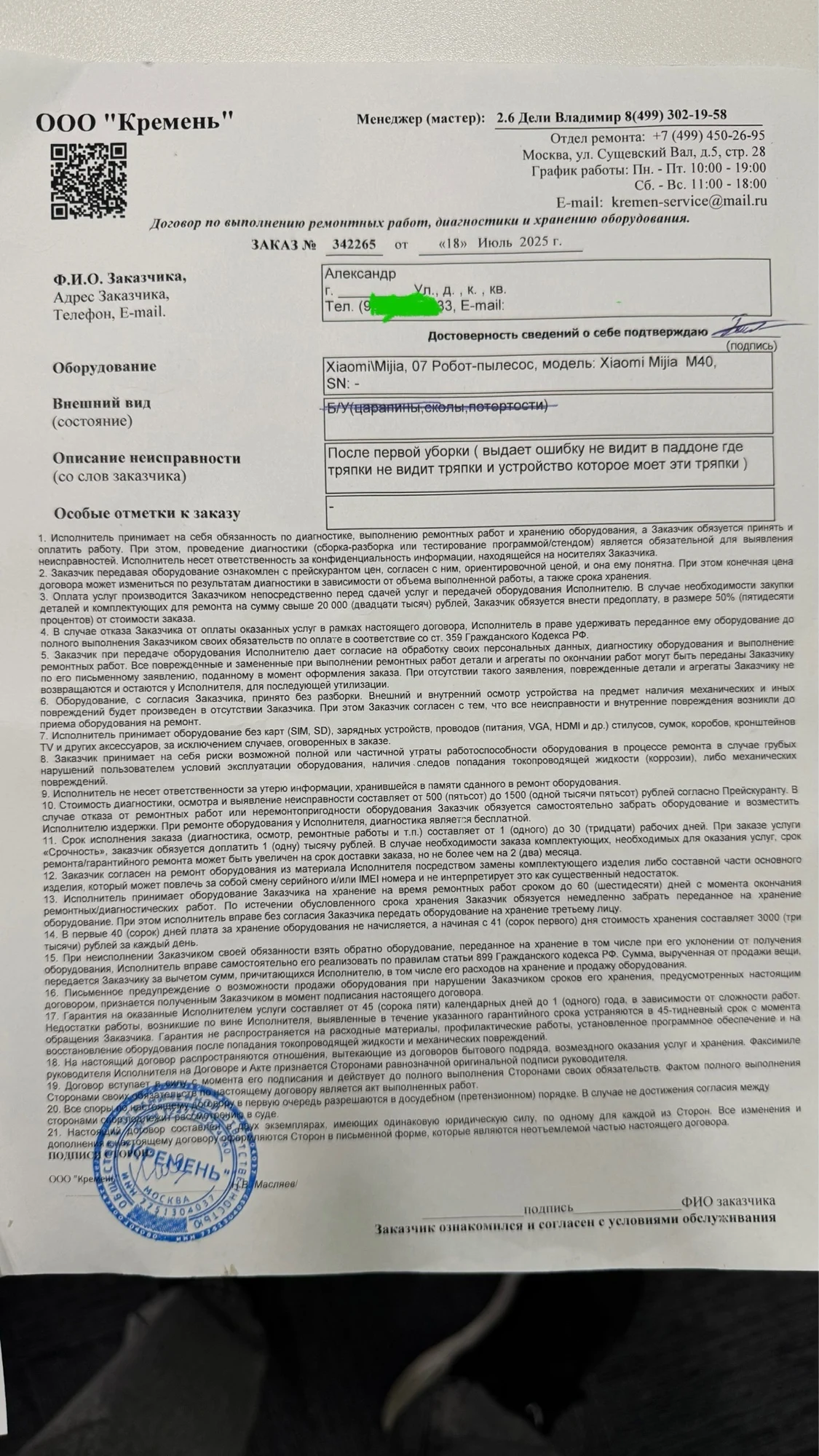 После первоц уборки сломался и не хотел определять тряпки для вдажной уборки и из-за этого не хотел даже сузую уборку делать. пришлось сдать нго в сервисный центр где запросили за ремонт 21000 рублей. пришлось заплатить. описал ситуацию продавцу и поддержке aliexpress. Сказали чтт нужно будет предоставить документы плсле ремонта для того чтобы мне возместили убытки. По итогу мне вернули только 6000 рублей. счылая на то что у них на поковтие только 30%. Как удобно да, отправляй брак и возвращай 30 с суммы ремонта даже, а не самого товара. Молодцы, выгодно вам прлучается. Людей обманывать так нагдо и не краснеть. Ситуация отвратительная, больше после такого ни я ни мои знааомы и друзья ничего дорого покупать из впшей страны не будем. Слишком большие риски остаться с лапшой на ушах.