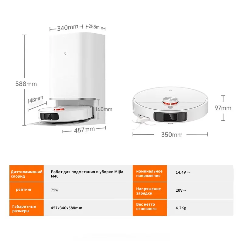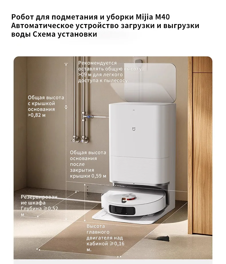 Робот-пылесос Xiaomi Mijia M40, 1000 Вт, беспроводной, влажная уборка, пылесборник