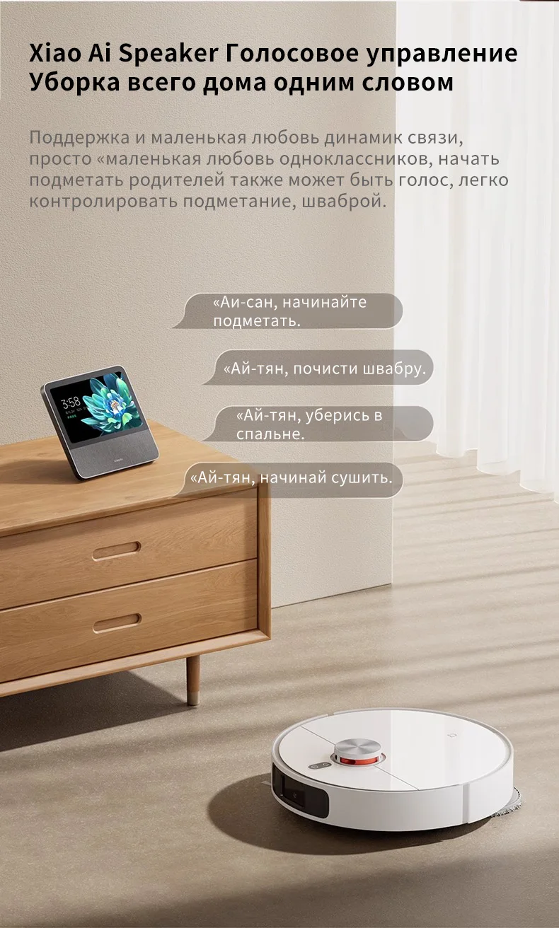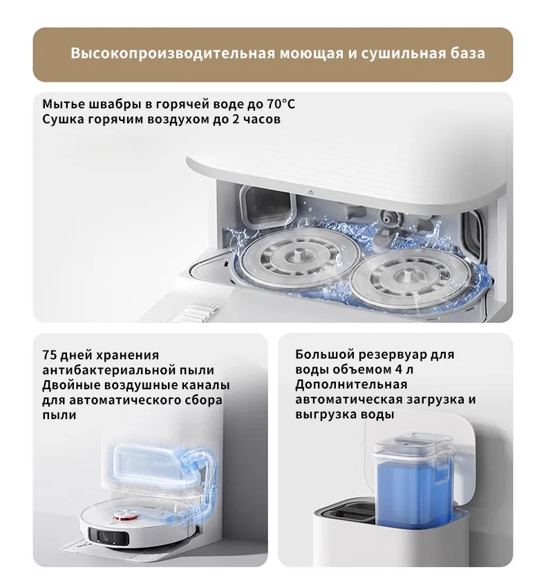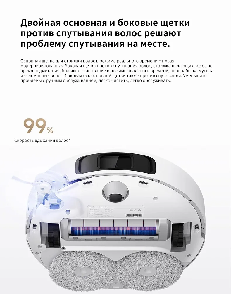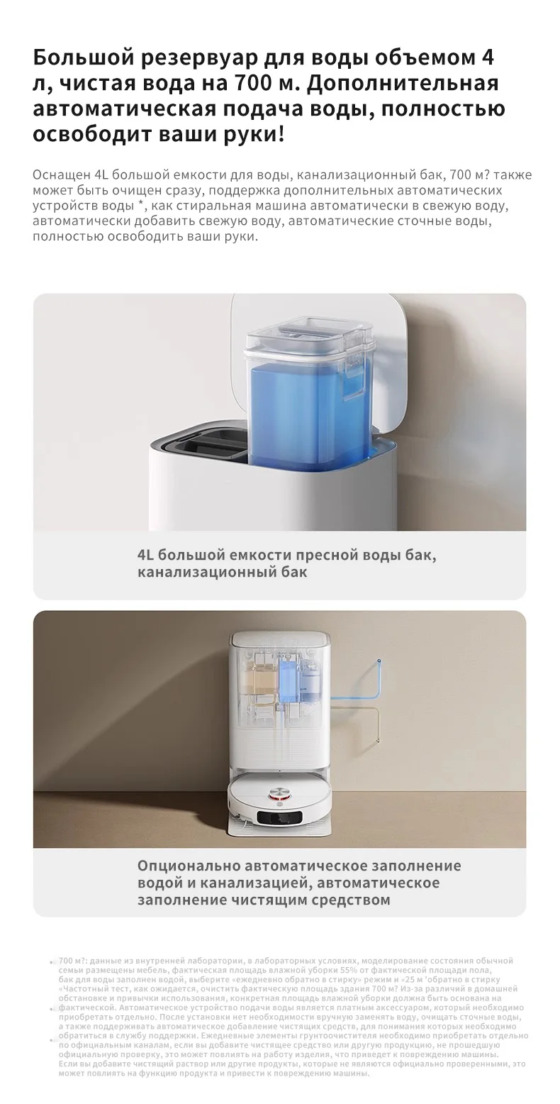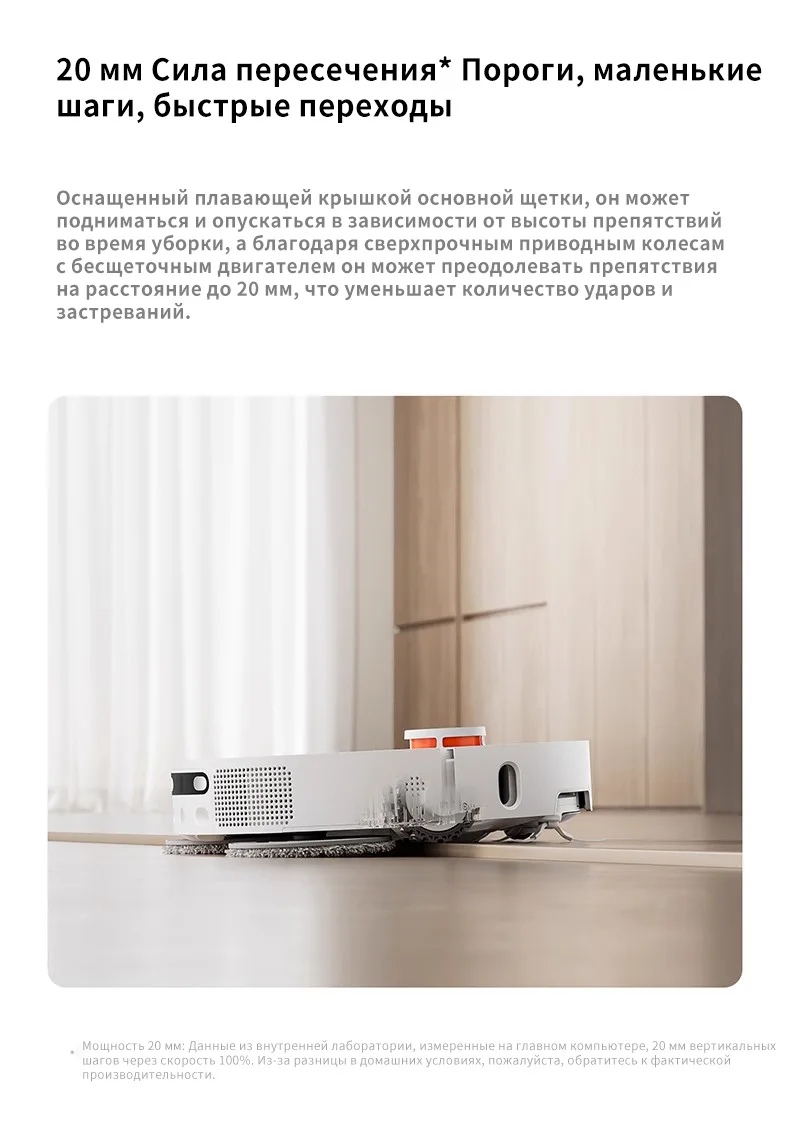* Гибкие методы очистки: автоматически поднимает боковые щетки и швабры для адаптации к различным типам полов и позволяет специально чистить мебель.