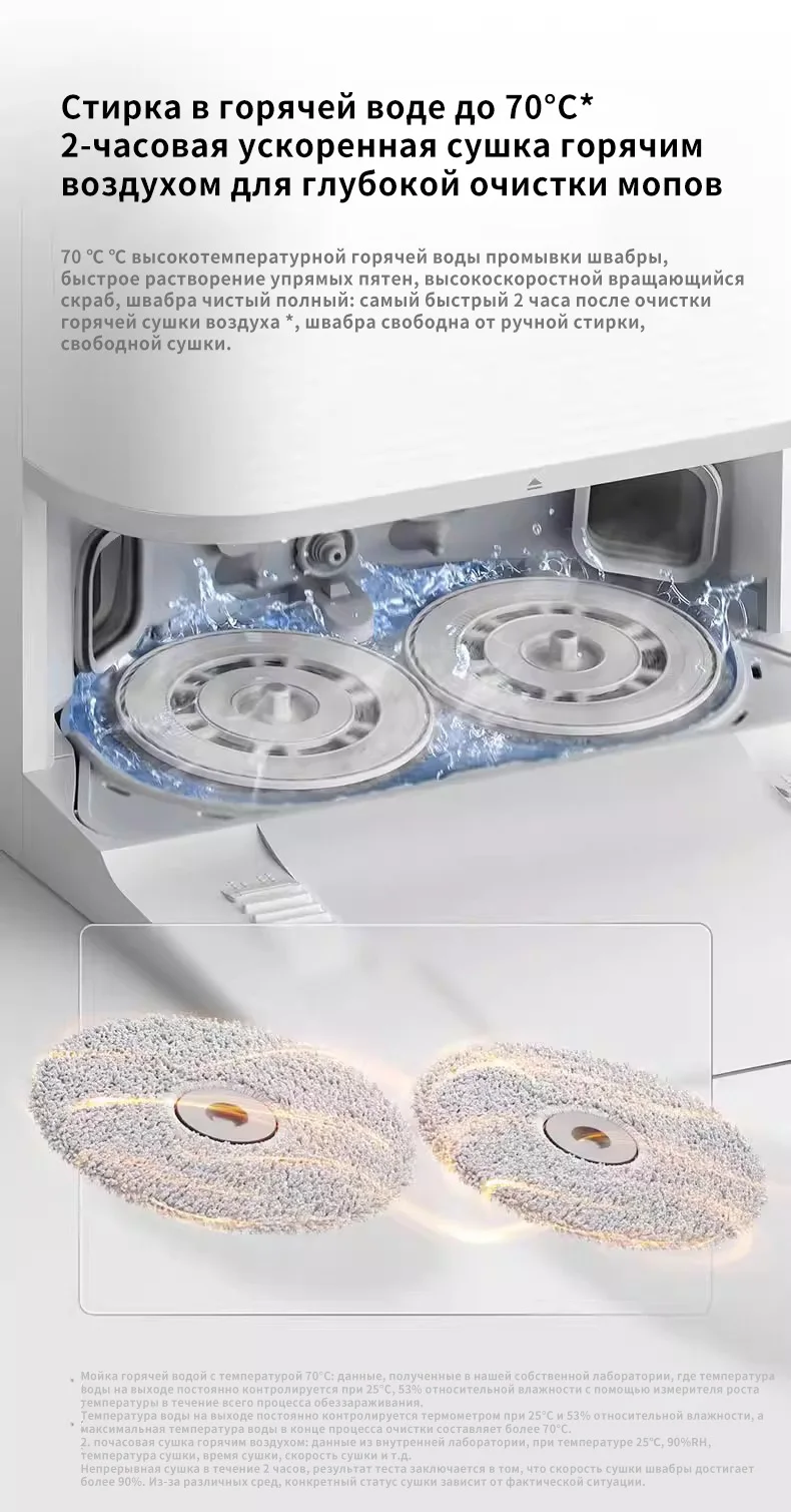 * Самоочищающееся основание: очищает швабры с помощью 70.°C горячую воду и быстро высыхает за 2 часа, сохраняя их чистым.