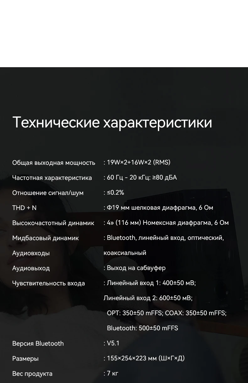 - Подключение:Оптический вход S/PDIF, Коаксиальный вход, Bluetooth, RCA