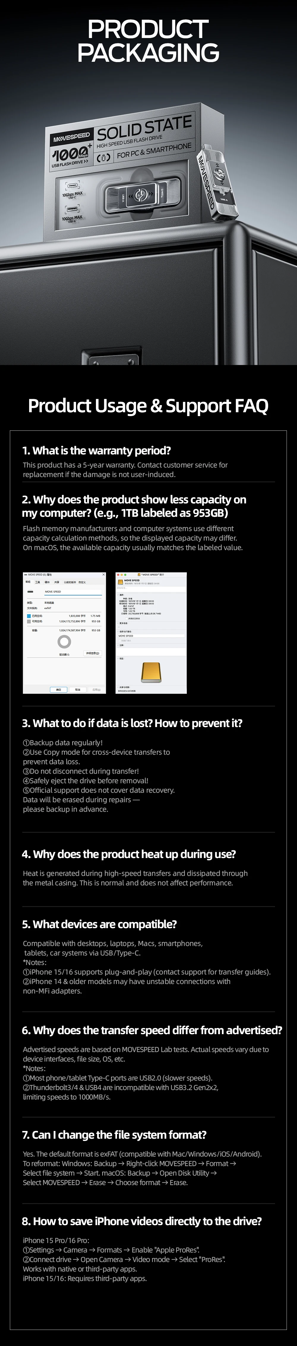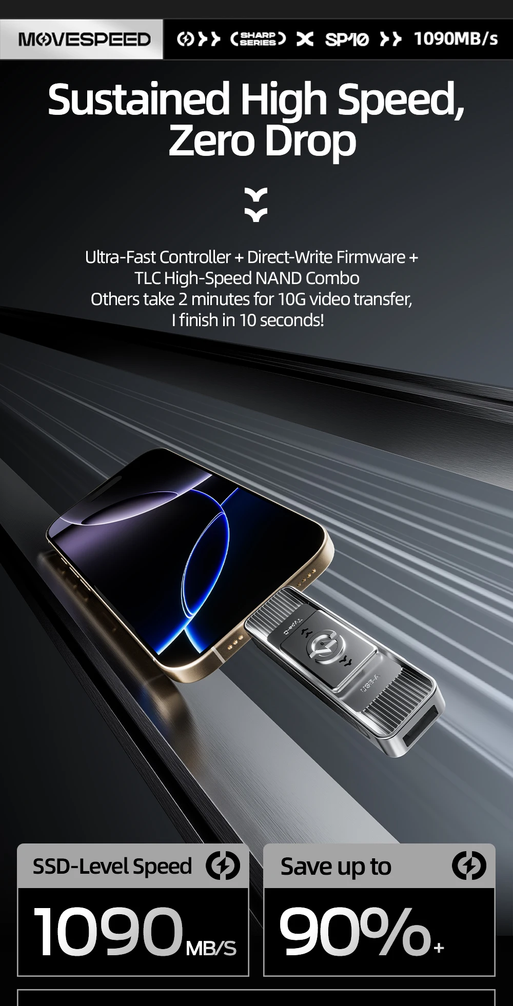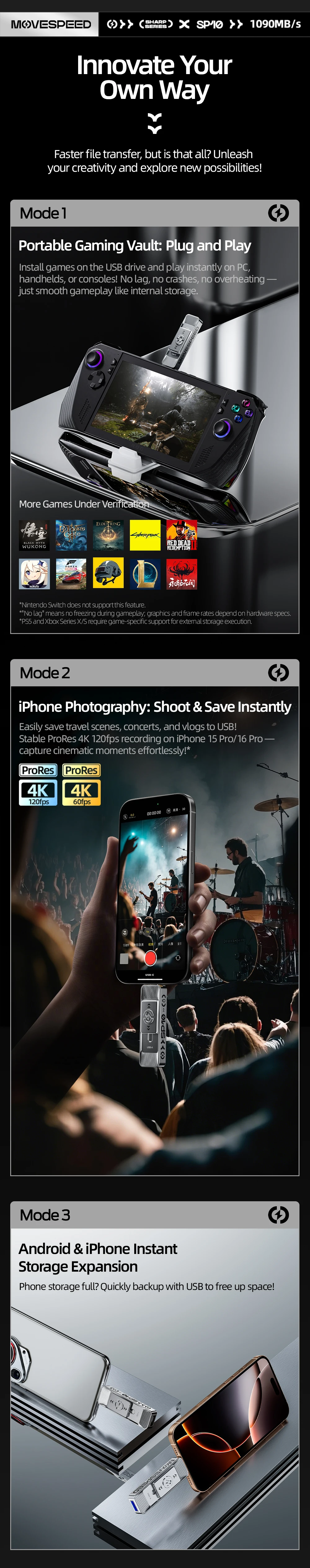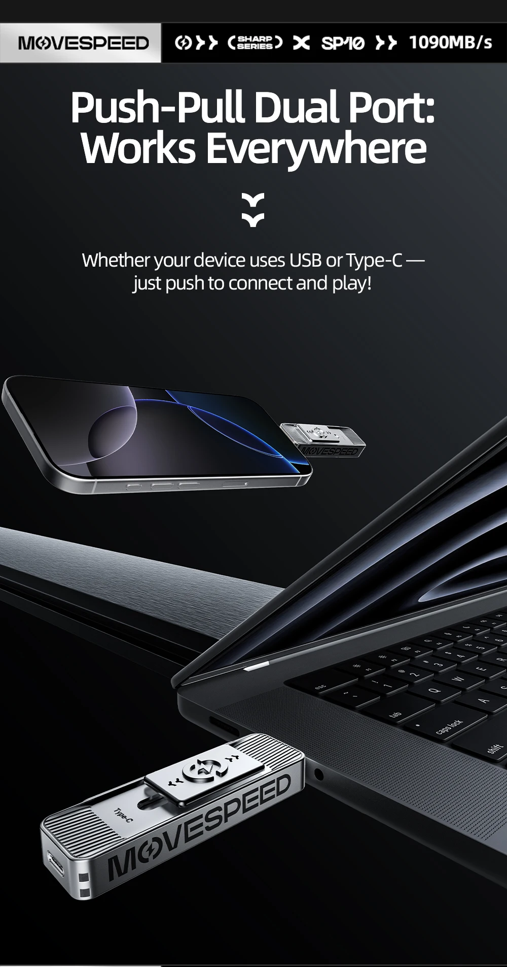 - Model:MOVESPEED 2 in 1 USB Flash Drive High Speed USB 3.2 Gen 2 Pen Drive Type C Interface Support OTG