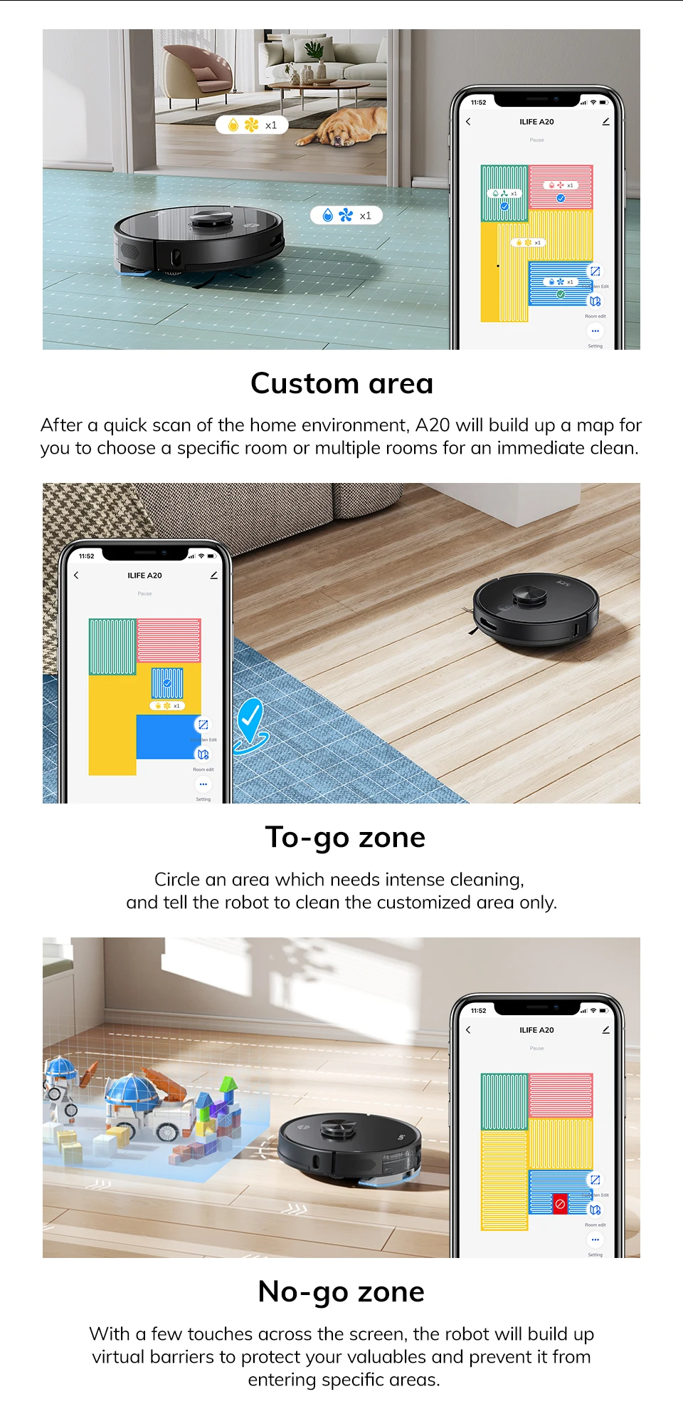 Робот-пылесос ILife A20, 35 Вт, беспроводной, влажная уборка, пылесборник