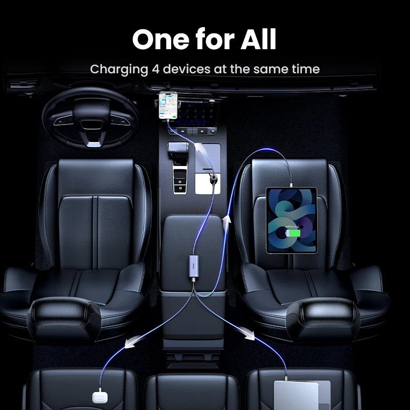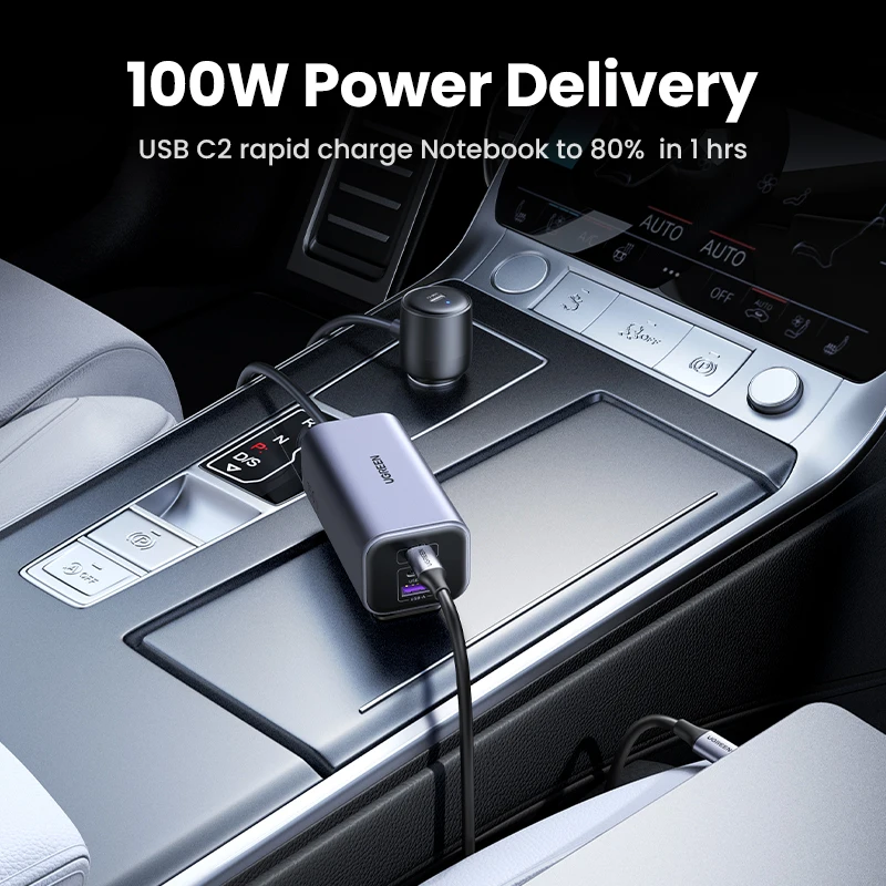 UGREEN Автомобильное зарядное устройство 130 Вт, удлинитель быстрой зарядки, 4 USB-устройства, зарядное устройство GaN для iPhone 17 16, зарядное устройство USB C для iPad, ноутбука