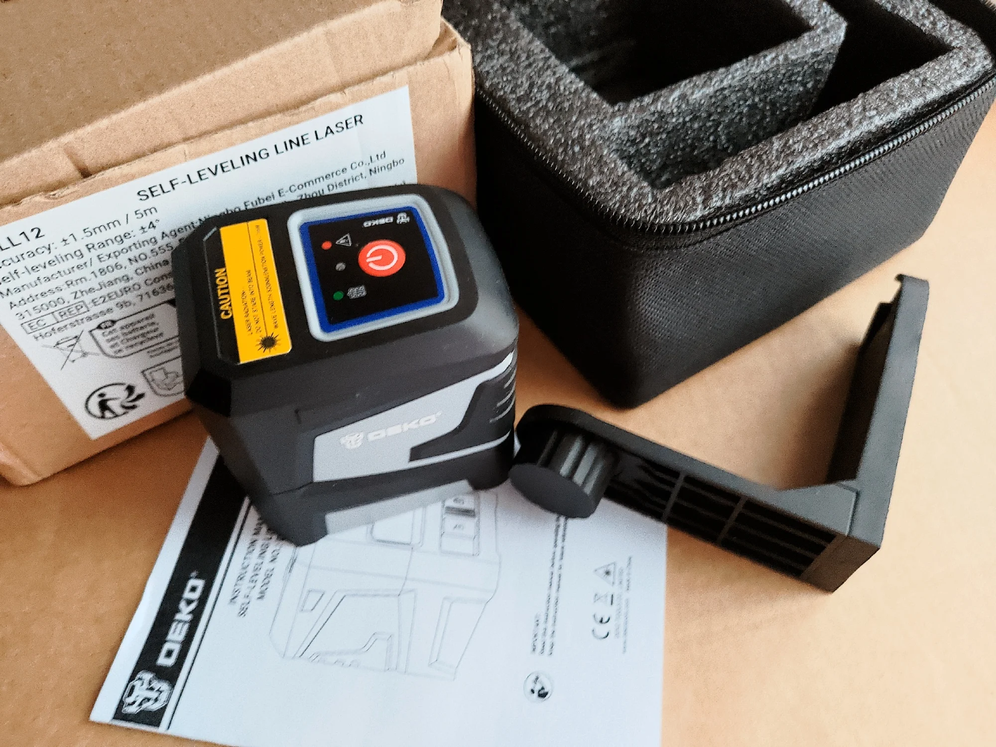 Лазерный уровень примчался со скоростью света. В картонной коробочке, лежит черный кофрик с логотипом, внутри кофрика - инструкция, лазерный уровень и угловой кронштейн с двумя магнитами. Всё проложено вспененной субстанцией. При пересылке ни один лазер не пострадал. Учтите,поставляется без батареек. Батарейки должны быть АА, 2 штуки. Светит ярко, брал с зелёным лучом.