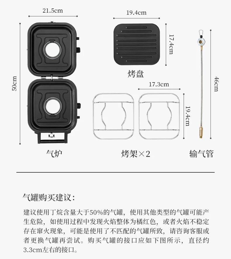 ProductList: Gas Stove / Barbecue Rack*2 / Baking Tray / Gas Pipe