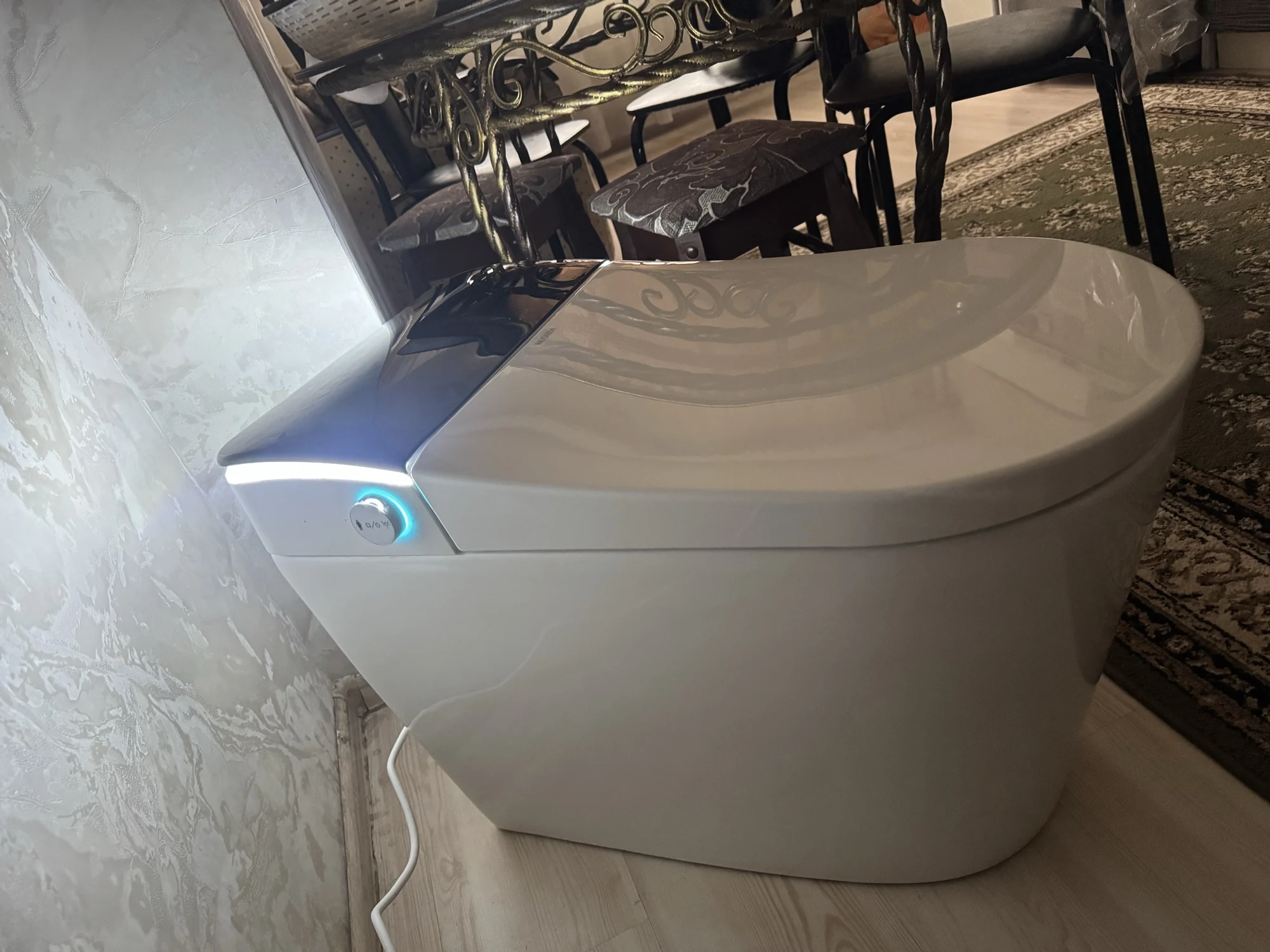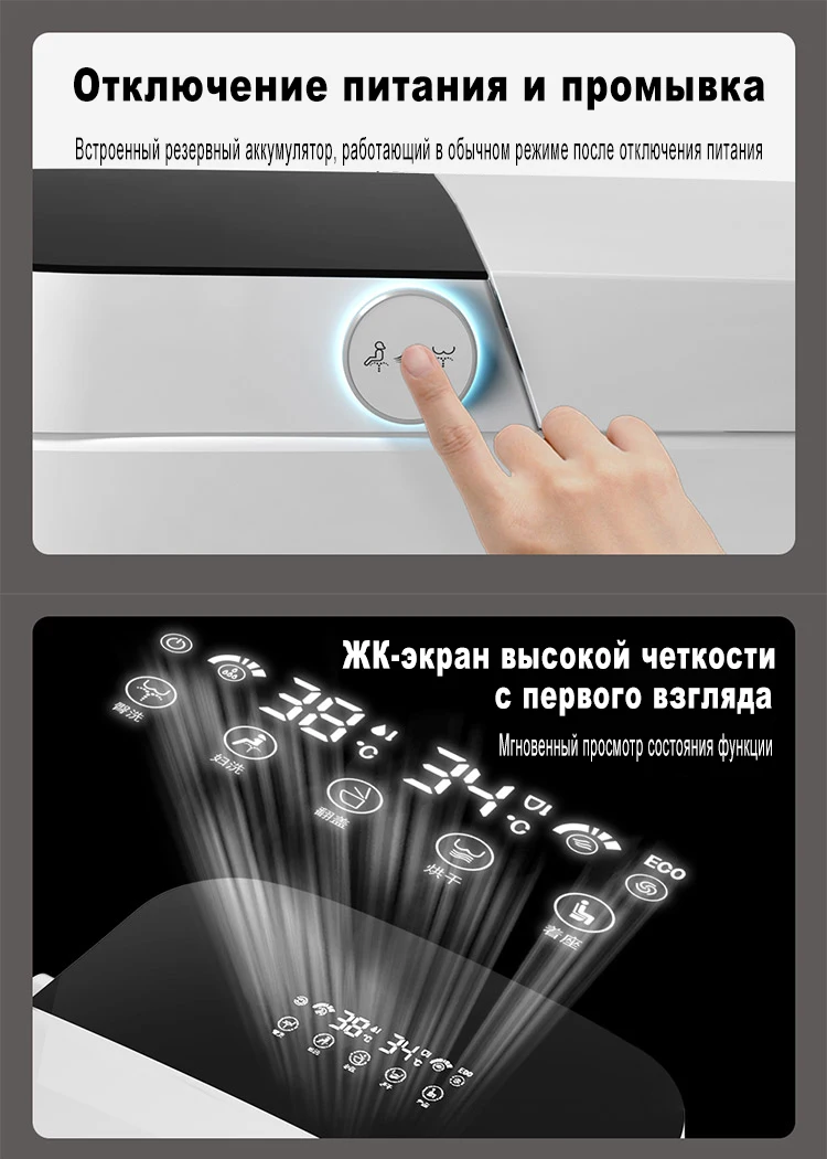 Очень интересное устройство в которое я сразу же влюбился)) Удобно, комфортно, всё делает за тебя, а ты лишь сидишь нажимаешь кнопочки)) Разобраться что к чему сложновато, инструкции как таковой нет, всё наугад. Думаю, многие функции ещё в дальнейшем приоткроют завесу тайны. Пока непонятны режимы смыва, что и как он делает при той или иной "операции") Бывает сильный смыв, бывает наоборот ни о чём и пока не совсем понятна зависимость (думаю дело времени). Не помешало бы приложение, если оно есть. С доставкой возникли некоторые проблемы, но по вине ТК и всё в итоге благополучно разрешилось. Коробка пришла без деревянной обрешётки, но внутри довольно толстый пенопласт и повредить унитаз нужно сильно постараться. От продавца получил подробную консультацию на свои вопросы, после чего был выбран вариант с максимальной комплектацией и получен подарок в виде банки с пеной (на последнем фото). Что за средство в банке и чем его заменить, либо где купить пока не понятно. По ощущениям это и как очищающее средство и как подобие таблеток в бачок, которые создают пену и приятный запах (хотя в данном случае, запах от пены не слишком сильный). По ходу пользования со временем, возможно, дополню отзыв. На сегодня по первым впечатлениям оценка 5)