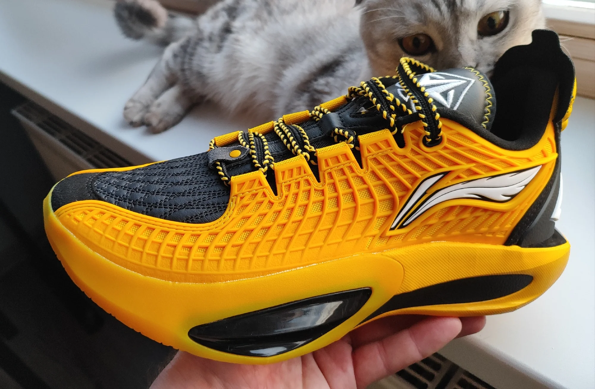ГУЗ:GCU (землический блок управления) это высокоэффективная технология материала подошвы, разработанная из литого полиуретана.В сочетании со специальным процессом вакуума и пеногашения характеристики материала более стабильны и легки, что усиливает сцепление внезапных остановок и внезапных запуска, а также значительные боковые изменения в баскетбольном мяче, обеспечивает устойчивость к истиранию и скольжению, а также легкая подошва, которая помогает спортсменам достигать более сильных спортивных результатов.