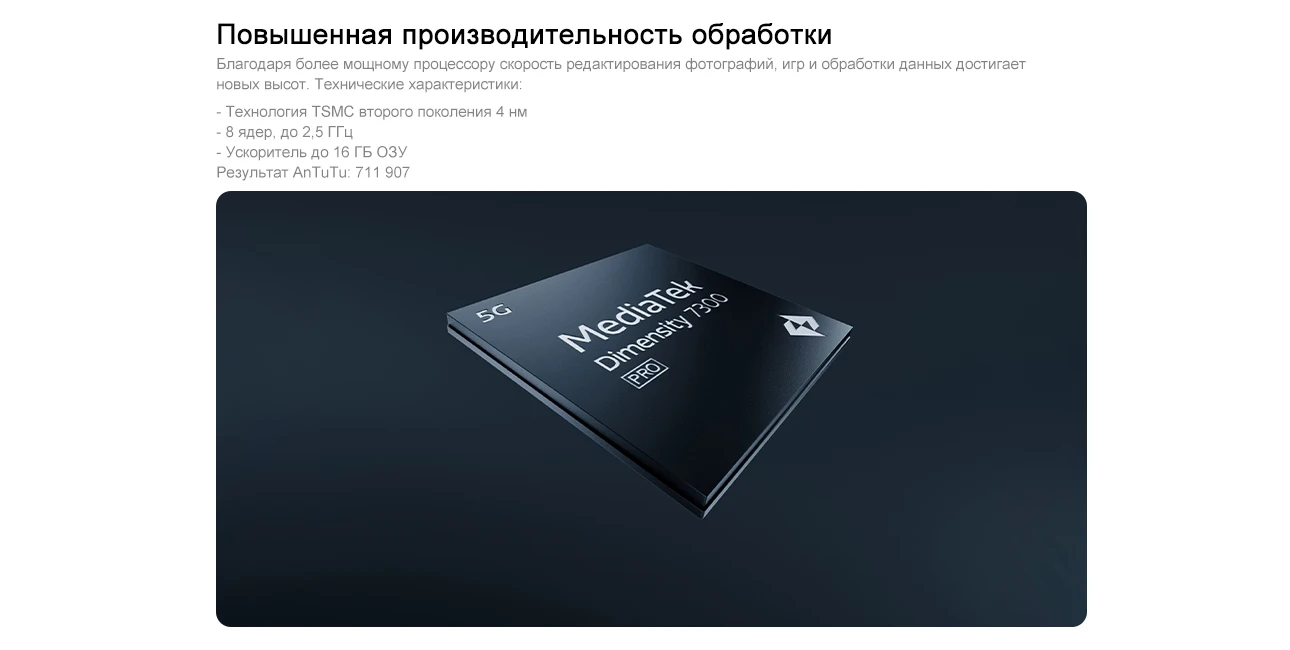 - Chipset:MediaTek Dimensity 7300 Pro 5G