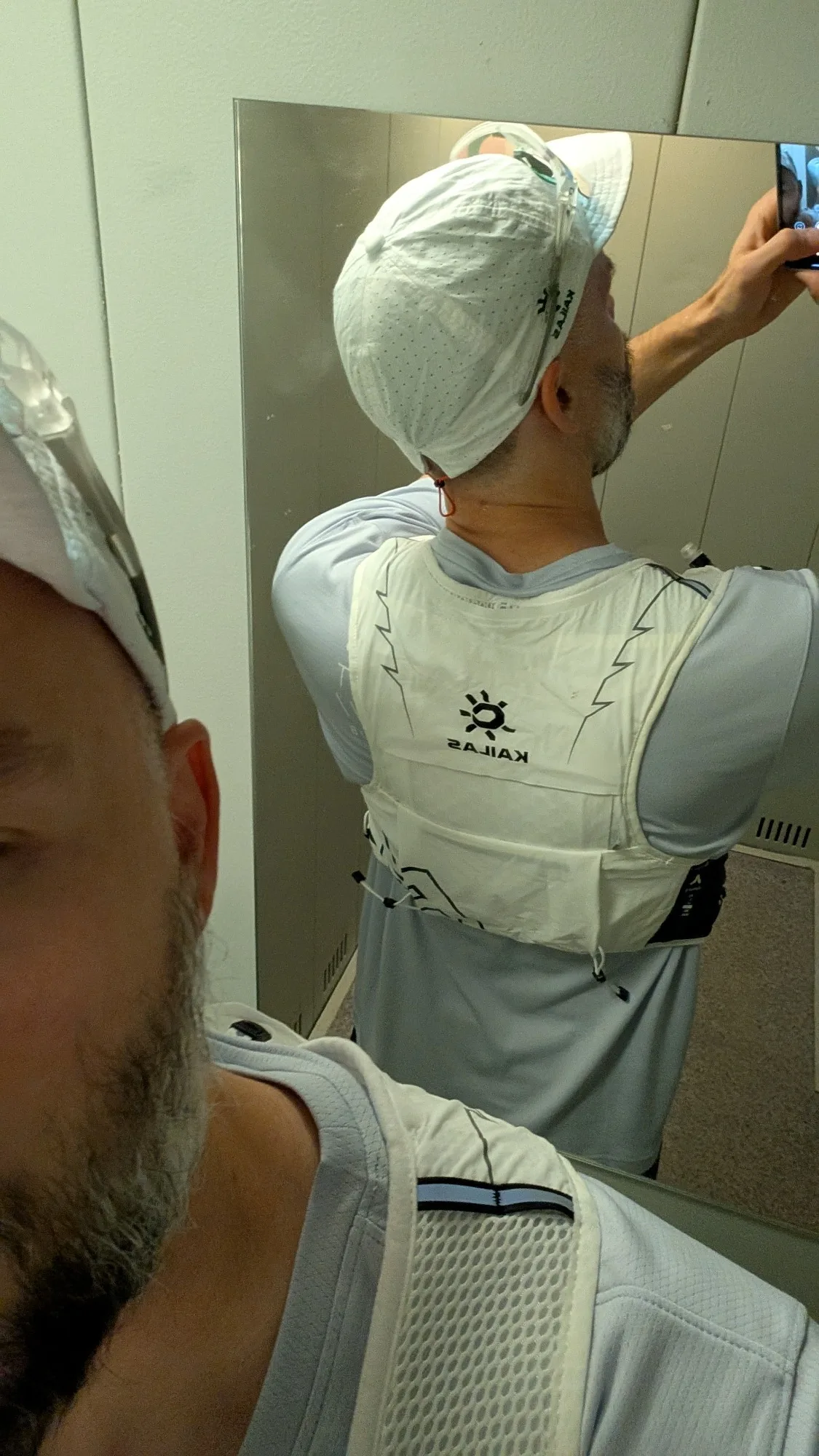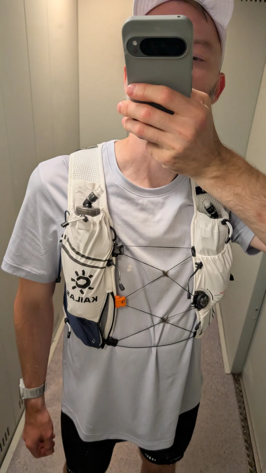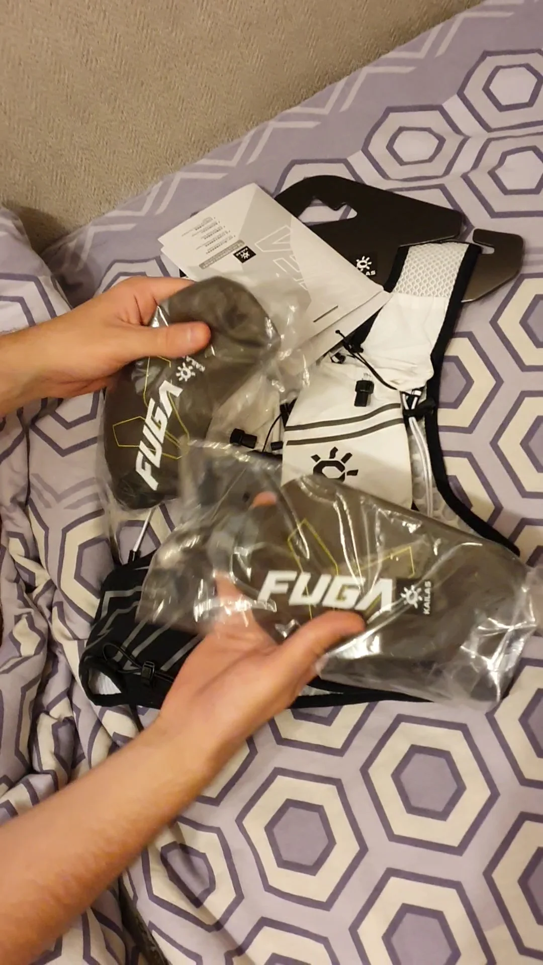 Хороший жилет. Нравятся утяжки на бутылочках, в прошлых жилетах были у меня просто резинки и фляги все равно бултыхались на бегу. Система утягивания спереди интересная, пришлось посидеть инструкцию почитать)) материалы довольно плотные, в +25-30 будет потно, но это кажется с любыми жилетом так. Подарков положили приятных- кепка и носки, за это экстра плюс в карму