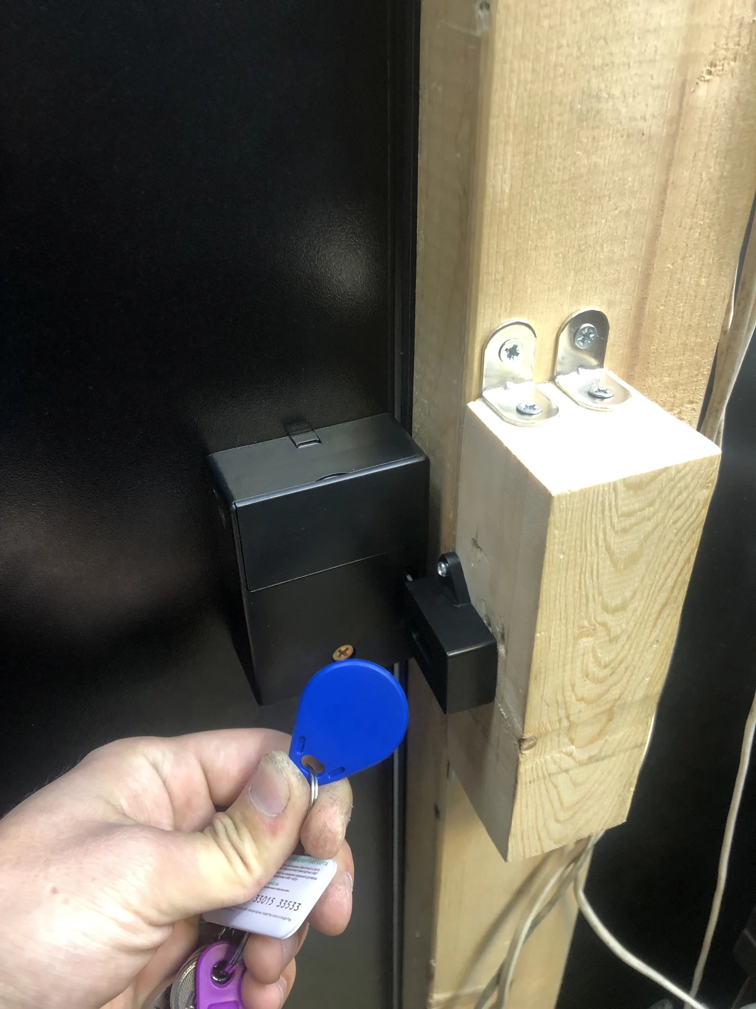Используйте удостоверение личности, чтобы прикоснуться к внешней стороне шкафа, блокировка будет щелкнуть и открывать дверь (Примечание: бирку можно использовать только для двери толщиной макс. 2,5 см, удостоверение личности можно использовать для двери толщиной макс. 4,5 см).
