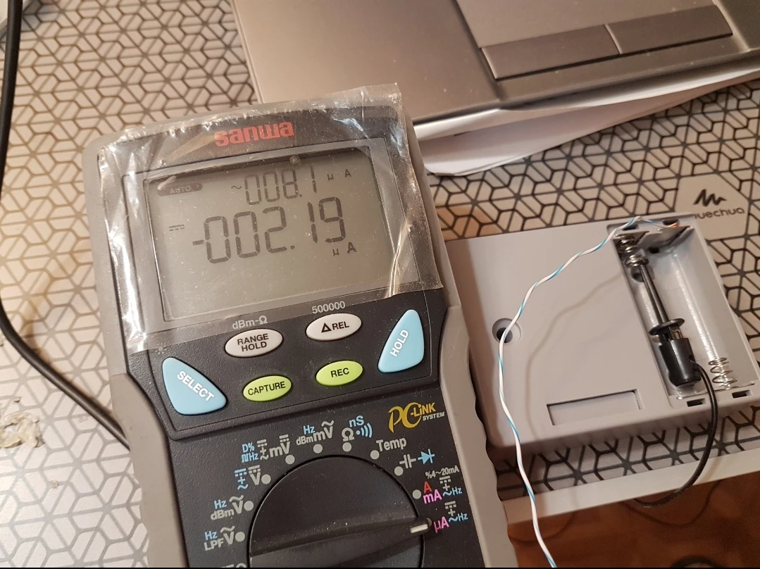 Провёл лабораторные работы. В пике при открытии потребляет более 350mA. При медленном снижении напряжения до нуля ничего не происходит, само не открывается. При снижении питания до 2.43V механизм и открывается и закрывается. А вот при 2.42V открывается и уже не закрывается. И тут есть гистерезис или клинит механика, потому как если начать поднимать питание, то опять механика начнёт работать только при 2.51V. Предупреждкние о низком заряде происходит аккурат в то время, когда замок перестаёт замыкаться. В ждущем режиме потребление 0.00000219А (прыгает от 1.3 до 2.19мкА [μА]). И так: четко работает до 2.51V, ниже ерундит механика (может закрыться а может и нет) , а ниже 2.42V перестанет закрывать замок. При 2.20 Перестаёт вообще работать, даже пишать.Sergey T. 26 февраля 2023