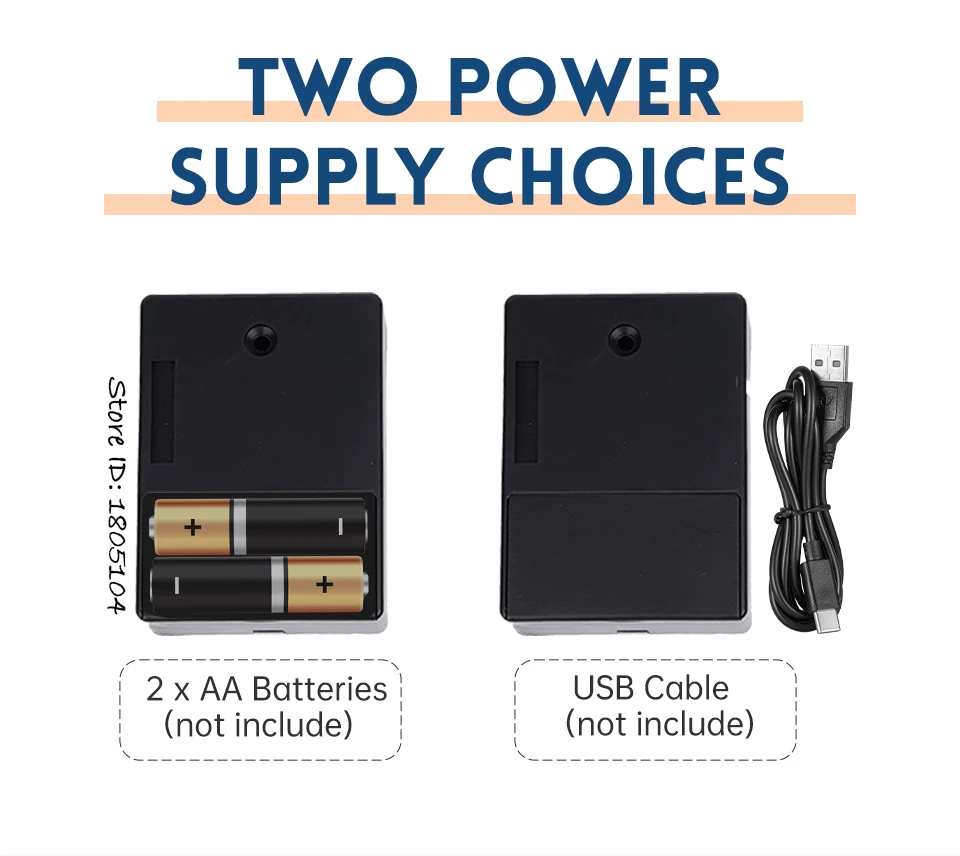 Первый тип: 2 батарейки АА (не входят в комплект)