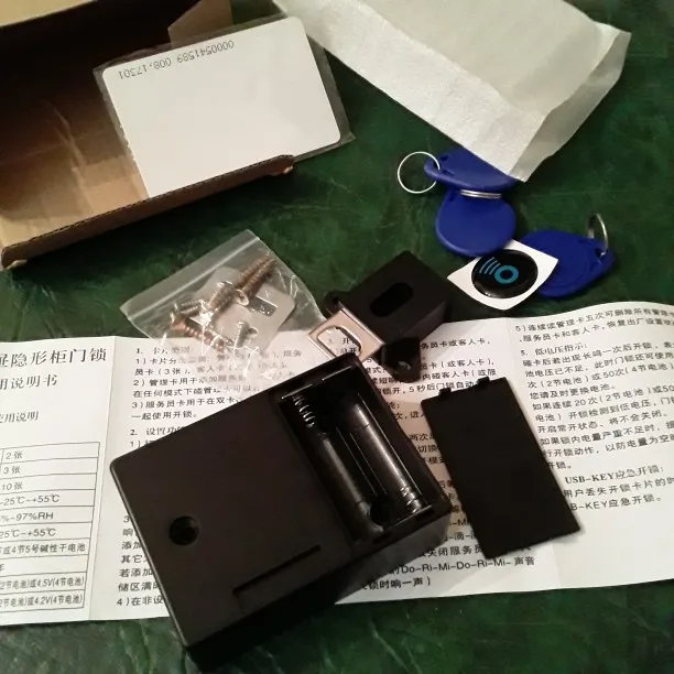 Доставка быстрая, из России, на 5-ый день в Московской области уже получила. Замки работают отлично, и от батареек, и от питания через usb порт. На случай если разрядятся батарейки и дверца не откроется, вывели кабель от разъема usb наружу через маленькое отверстие в задней стенке шкафа. Так что, при разряженных батарейках можно будет подключить замок через блок питания. ) Заказывала три замка, у всех трёх комплектация немного отличается от указанной в описании - у каждого замка по две карты и по два ключа, за это сняла одну звезду, а согласно описанию и картинке на сайте должны быть одна карте и три ключа. Для меня это не принципиально, нам хватит два ключа, при необходимости и картой можно открыть, и можно запрограммировать дополнительные ключи. В инструкции описано как это сделать, но нужен перевод, она на китайском и английском. Замки отличные! Благодаря им мебель сохраняет свой внешний дизайн, не требуются всякие навесные замочки, скважины и прочие навороты. Очень довольна!Tamara A. 4 августа 2022